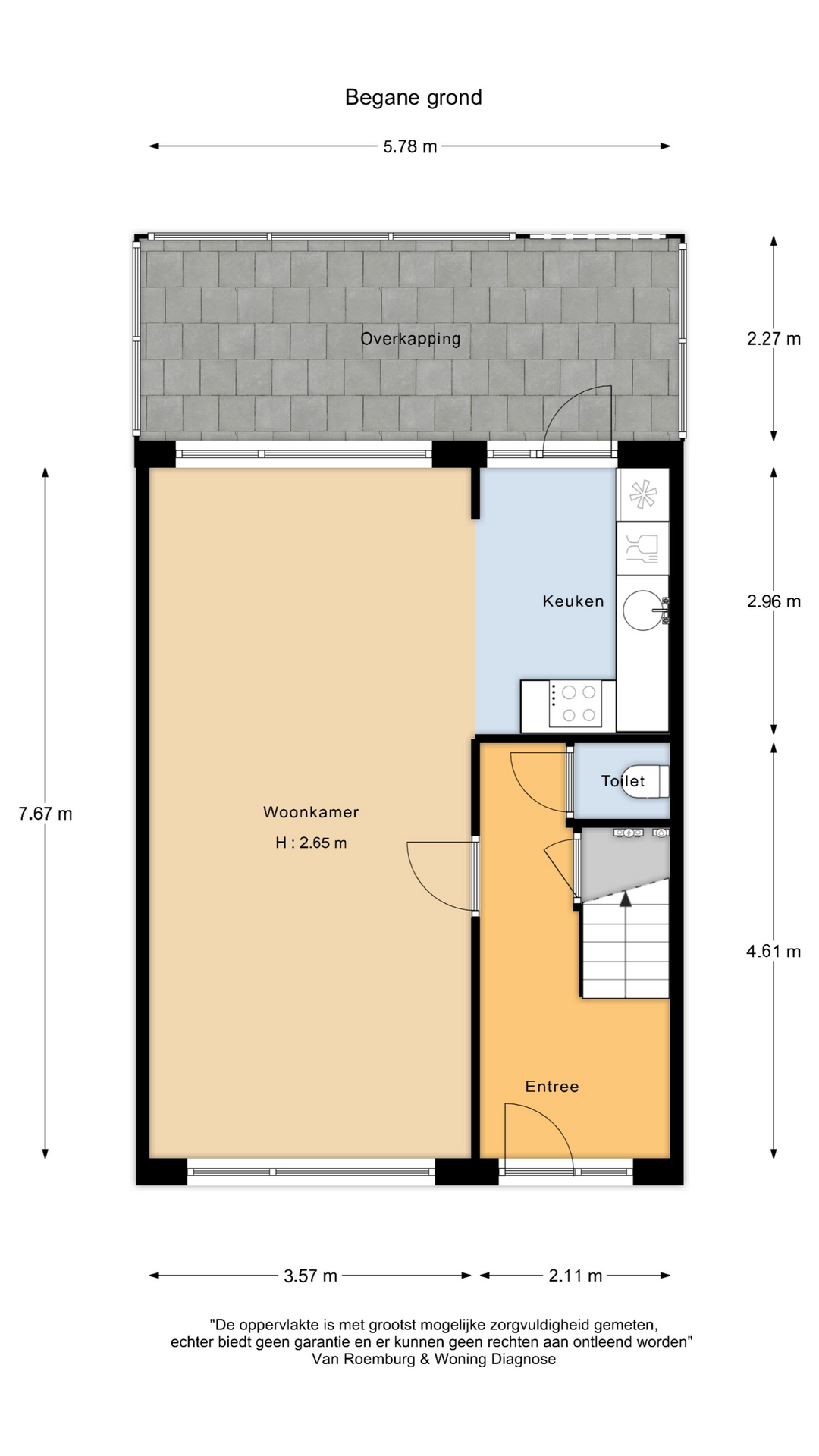 Begane grond: Entree met hal, trapopgang, toilet en provisiekast. Vanuit de hal is er toegang tot de woonkamer, die aan de voorzijde van de woning is gelegen. De woonkamer is prettig licht en biedt een fijne leefruimte. Aan de achterzijde bevindt zich de eetkamer en de open keuken. Deze is voorzien van diverse inbouwapparatuur. De tuin ligt op het noordwesten, voorzien van een overkapping aan het huis die met een afsluitbaar scherm beschut kan worden. Daarnaast is er een berging en een achterom, wat zorgt voor extra gemak.