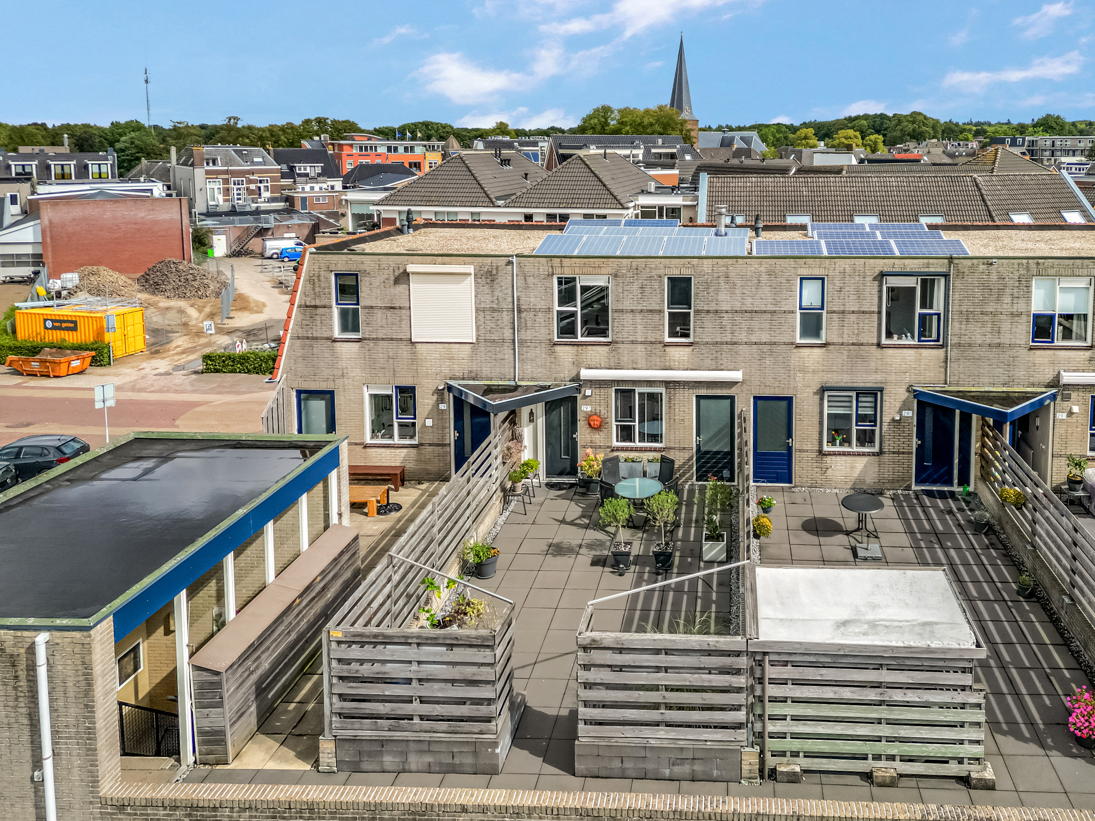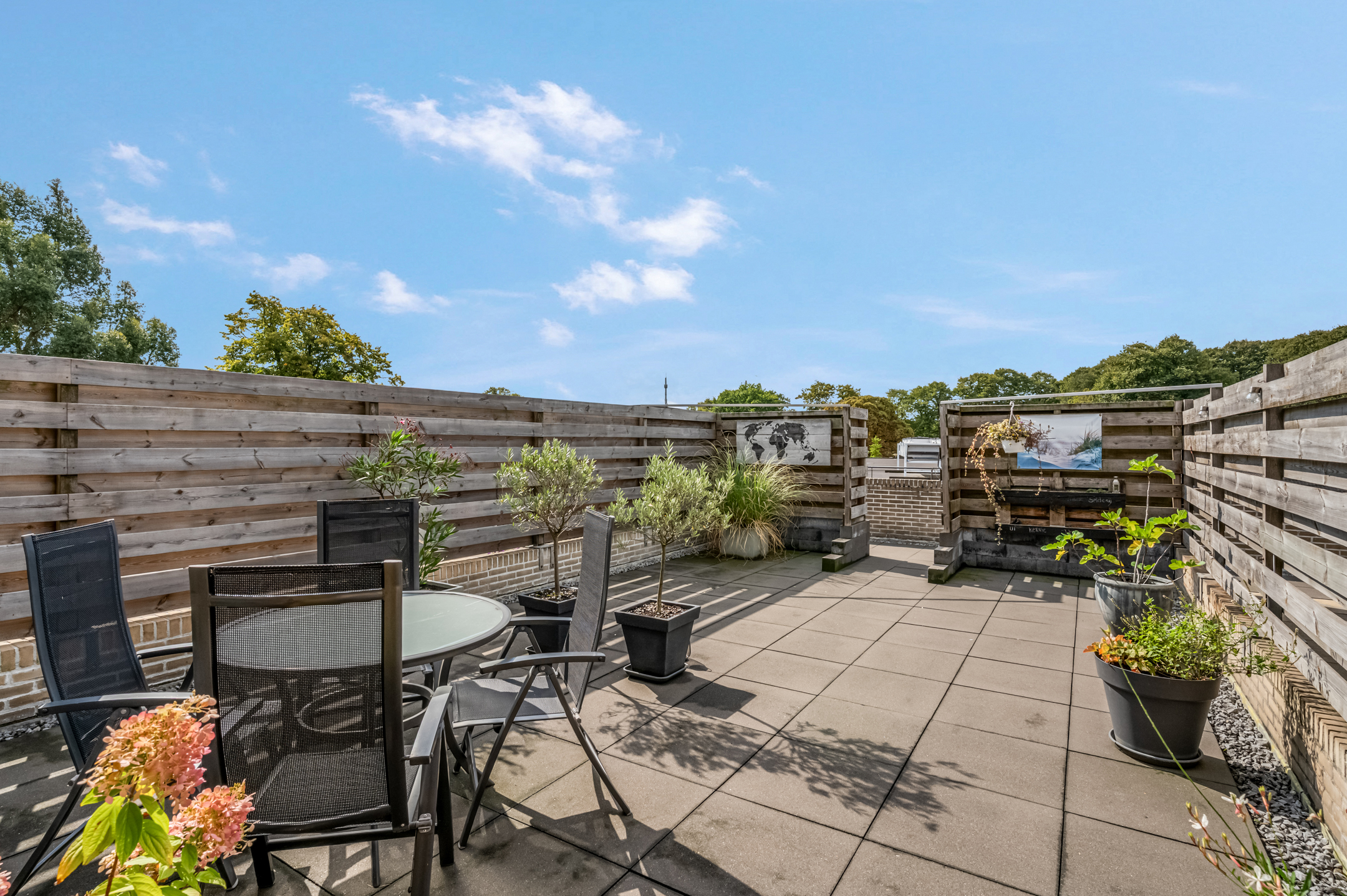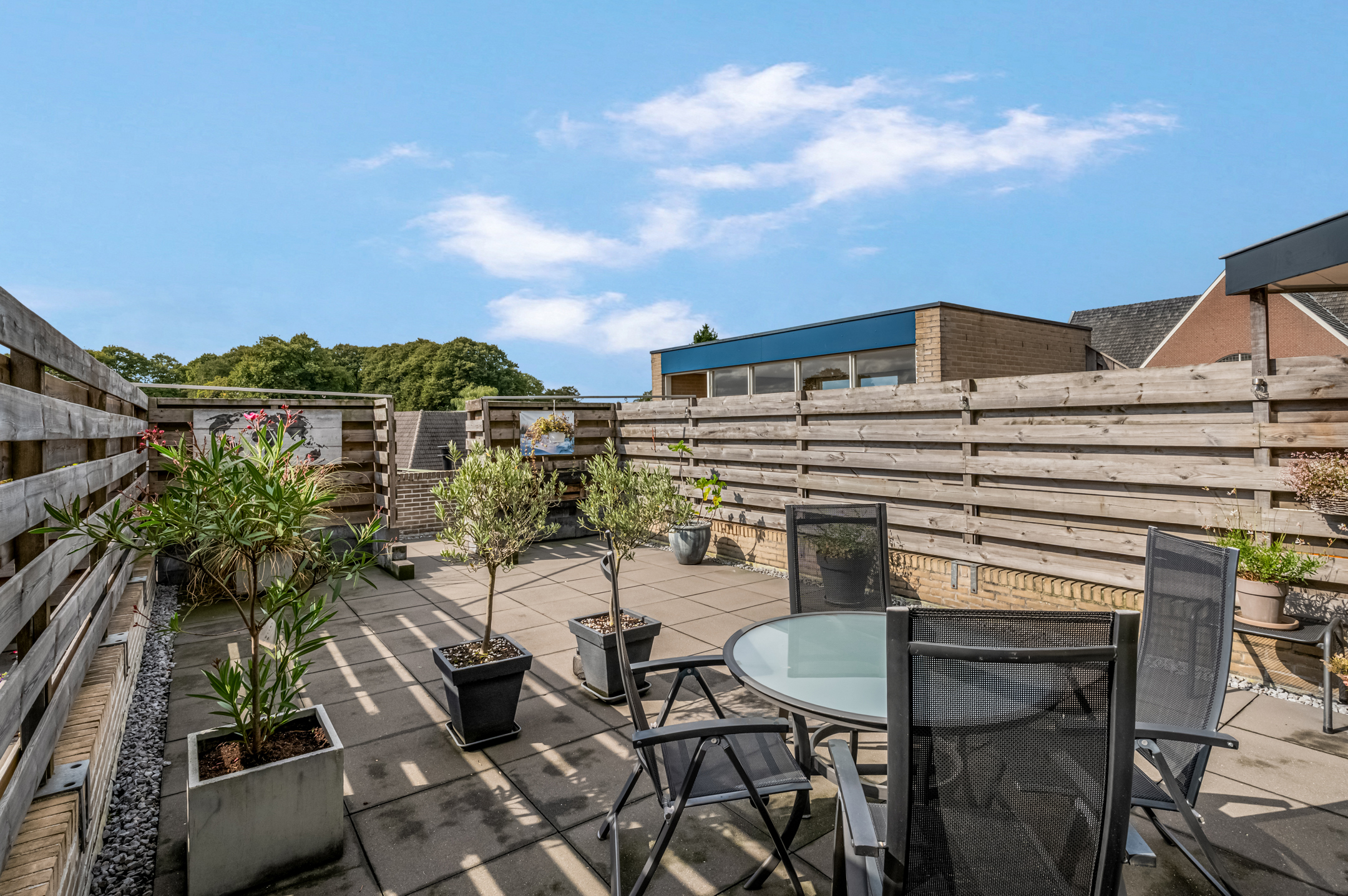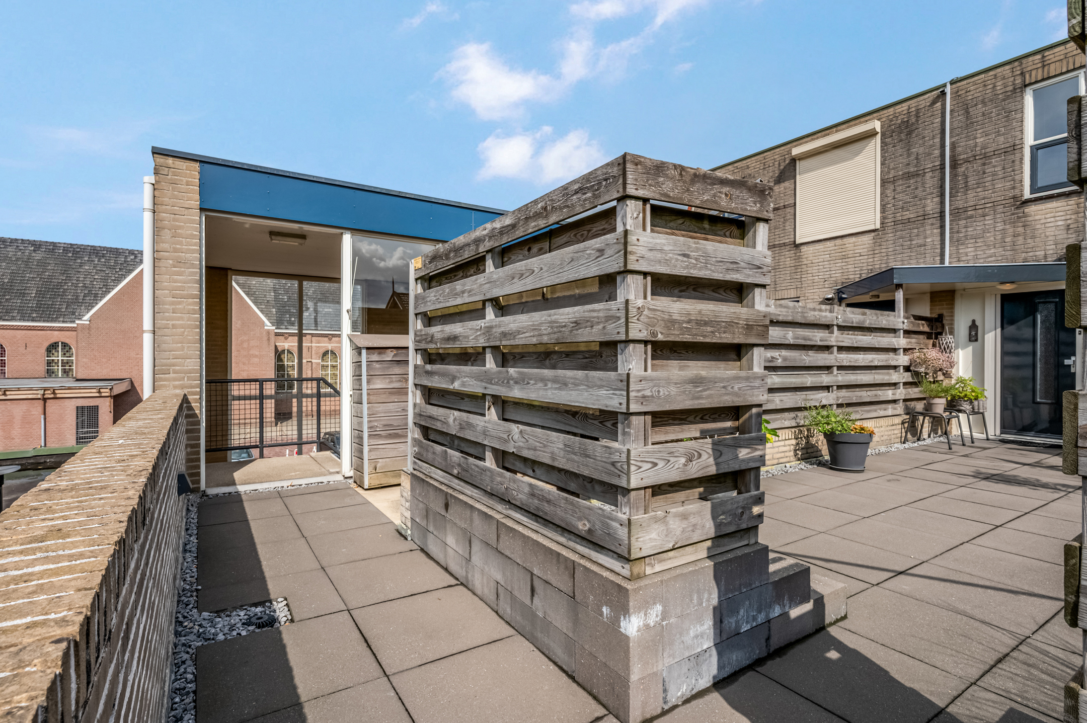 Via het portiek met beltableau kom je binnen en bereik je direct het royale dakterras.