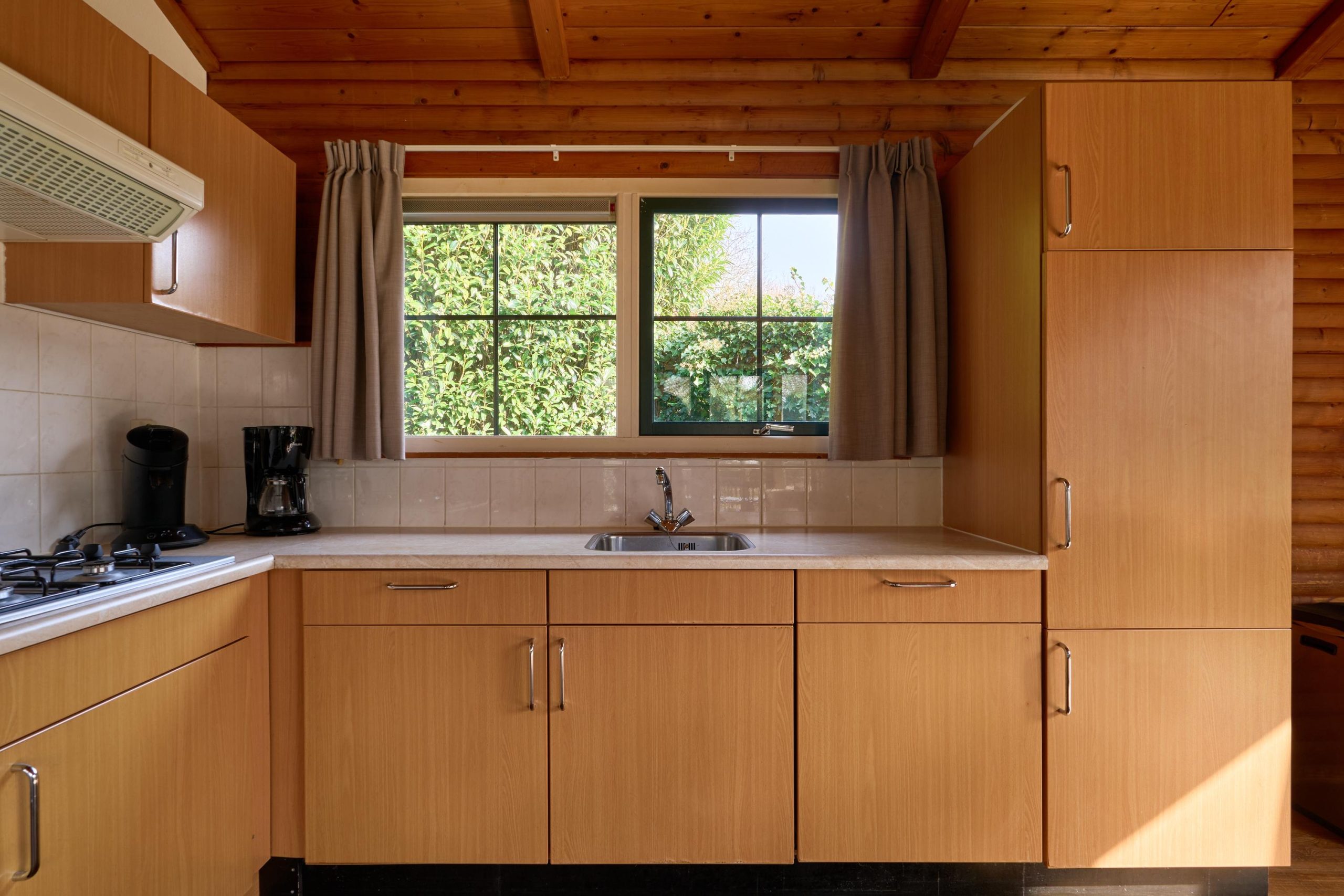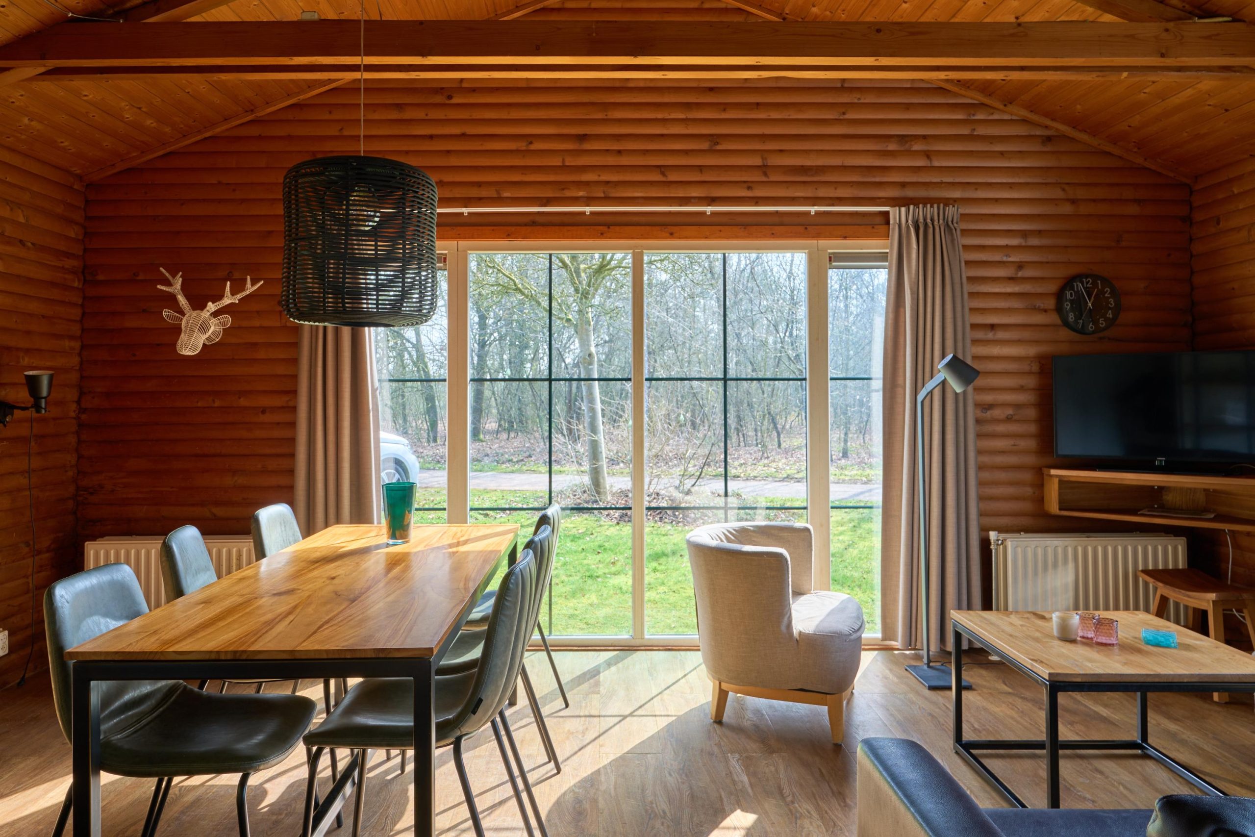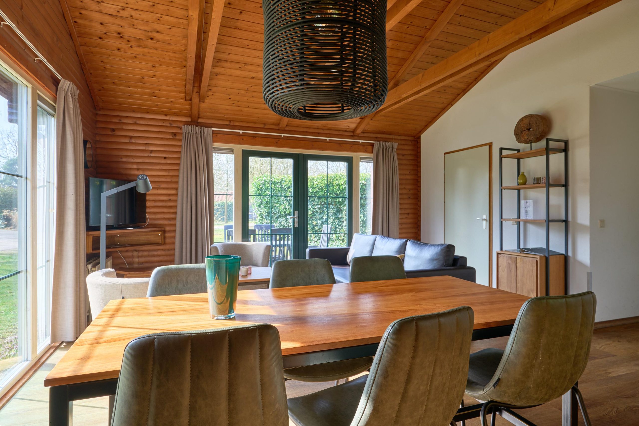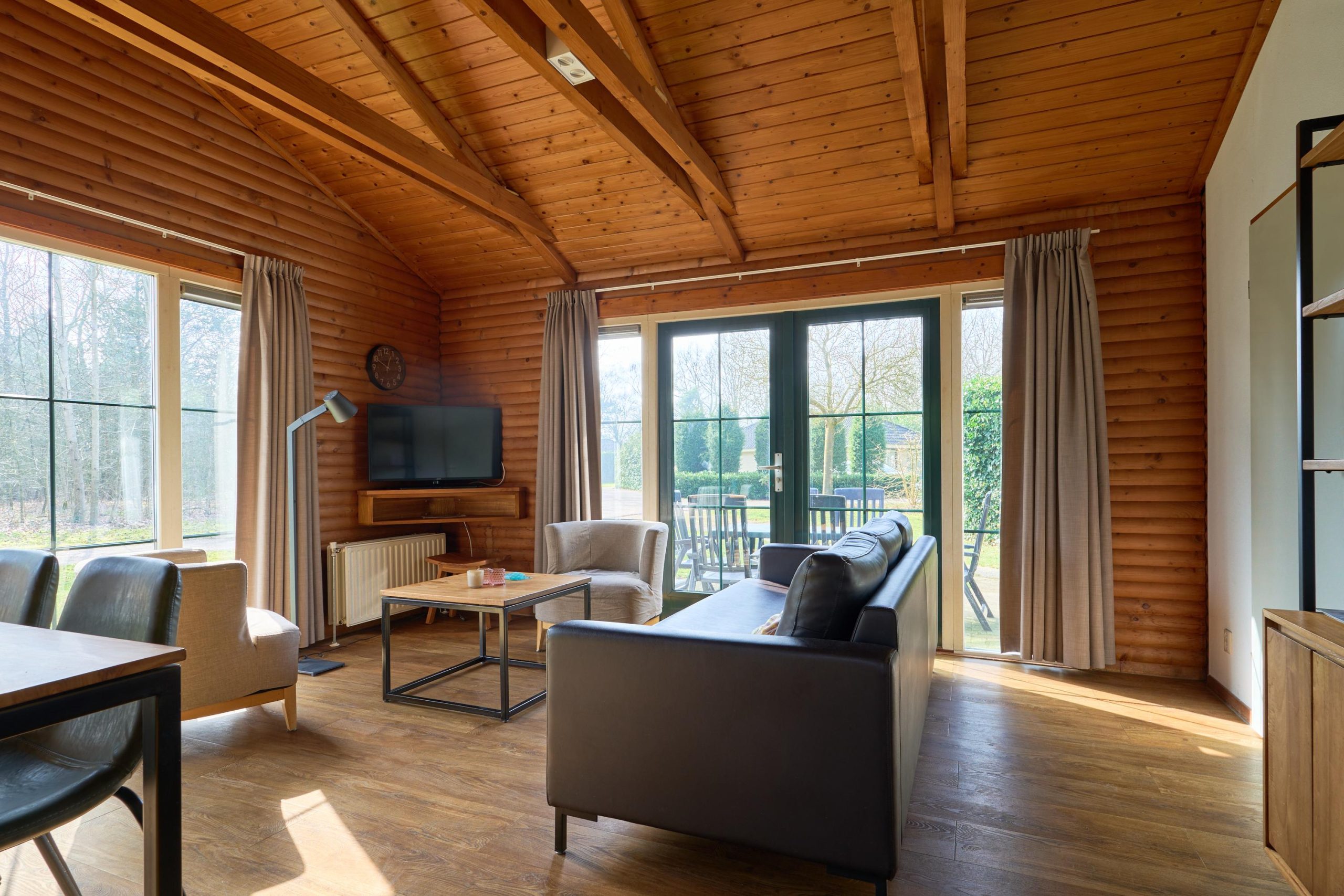 Deze vrijstaande 6-persoonsbungalow (type Loghome) beschikt over een ruime woonkamer met zit- en eethoek en een open keuken met diverse inbouwapparatuur, waaronder een combimagnetron, koelkast met vriesvak en vaatwasser. Er zijn 3 slaapkamers aanwezig, waarvan één met aangrenzende gerenoveerde badkamer voorzien van douche en wastafel. Daarnaast is er nog een tweede gerenoveerde badkamer aanwezig met ligbad en wastafel. Het toilet is separaat. Deze recreatiewoning beschikt over een inpandige berging.