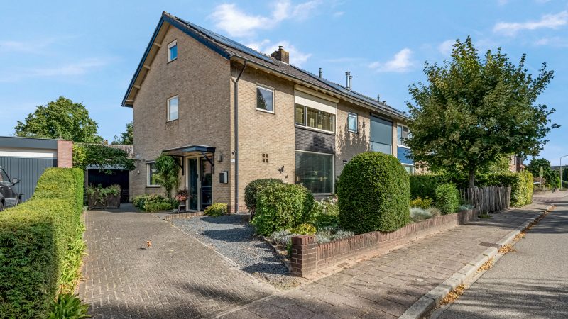 De oprit biedt ruimte om de auto op eigen perceel te plaatsen. Verder heeft de woning een praktische garage met een elektrisch bedienbare kanteldeur. De tuin is verzorgd en onderhoudsvriendelijk aangelegd en biedt een fijne buitenruimte.