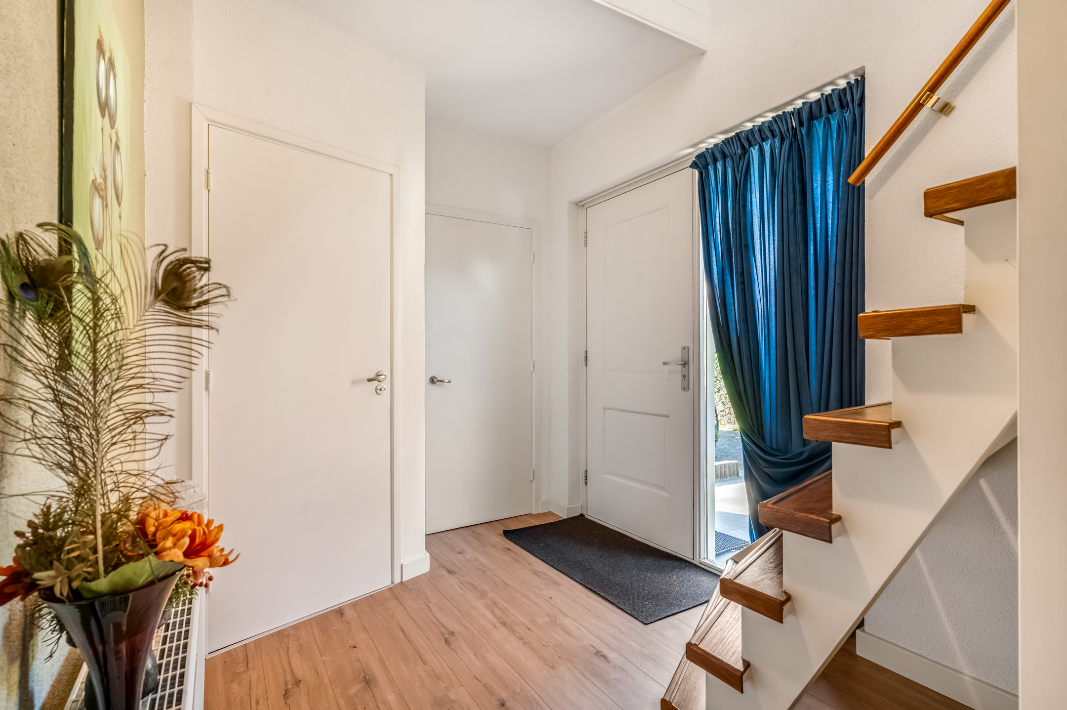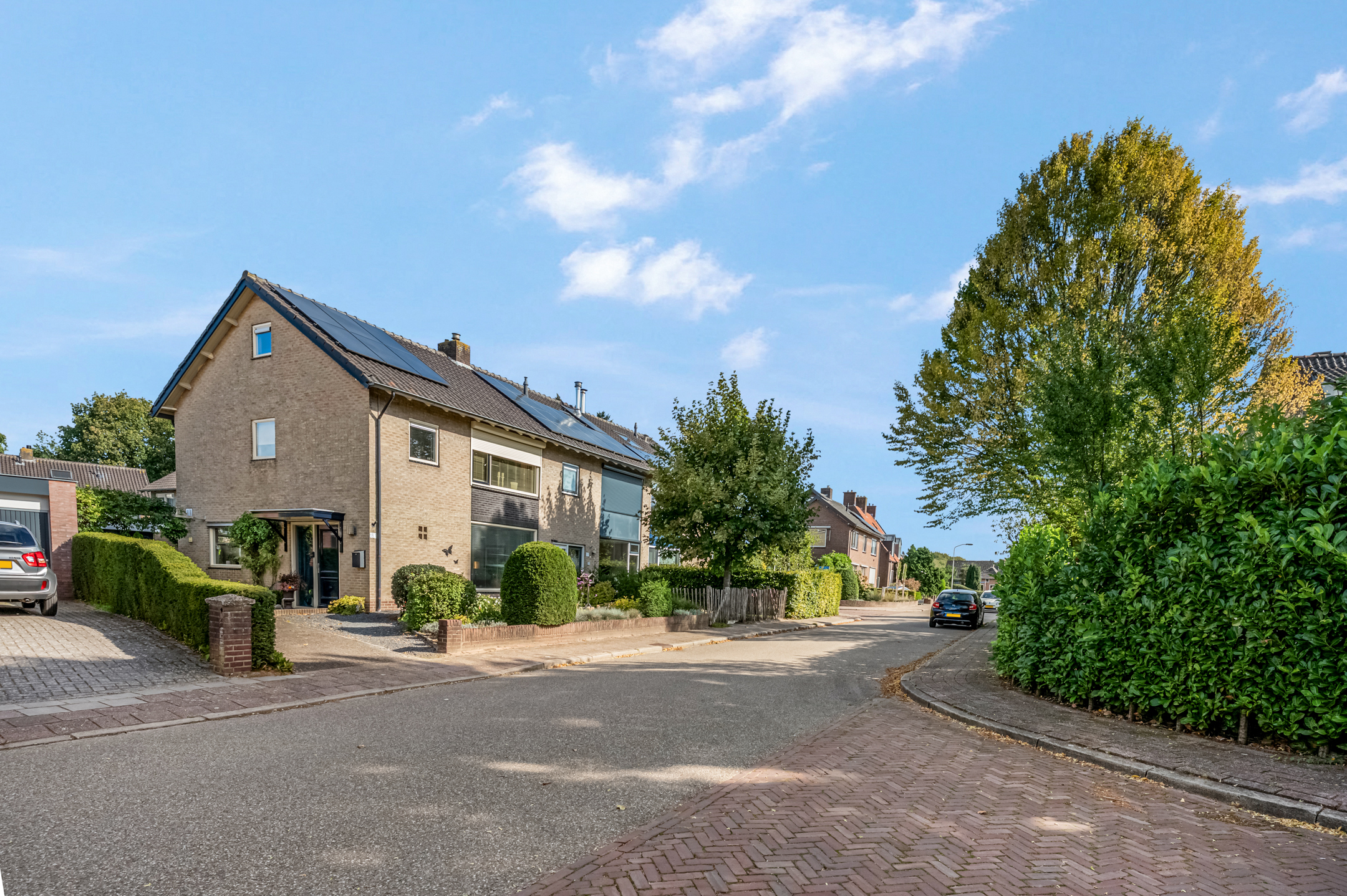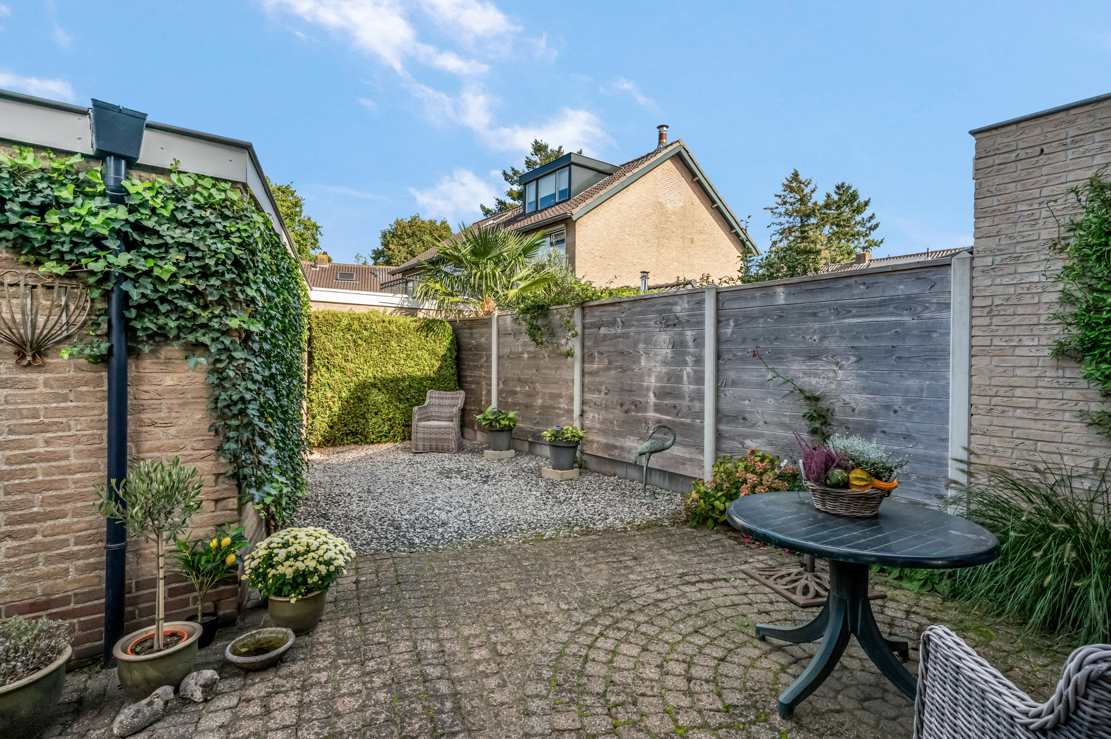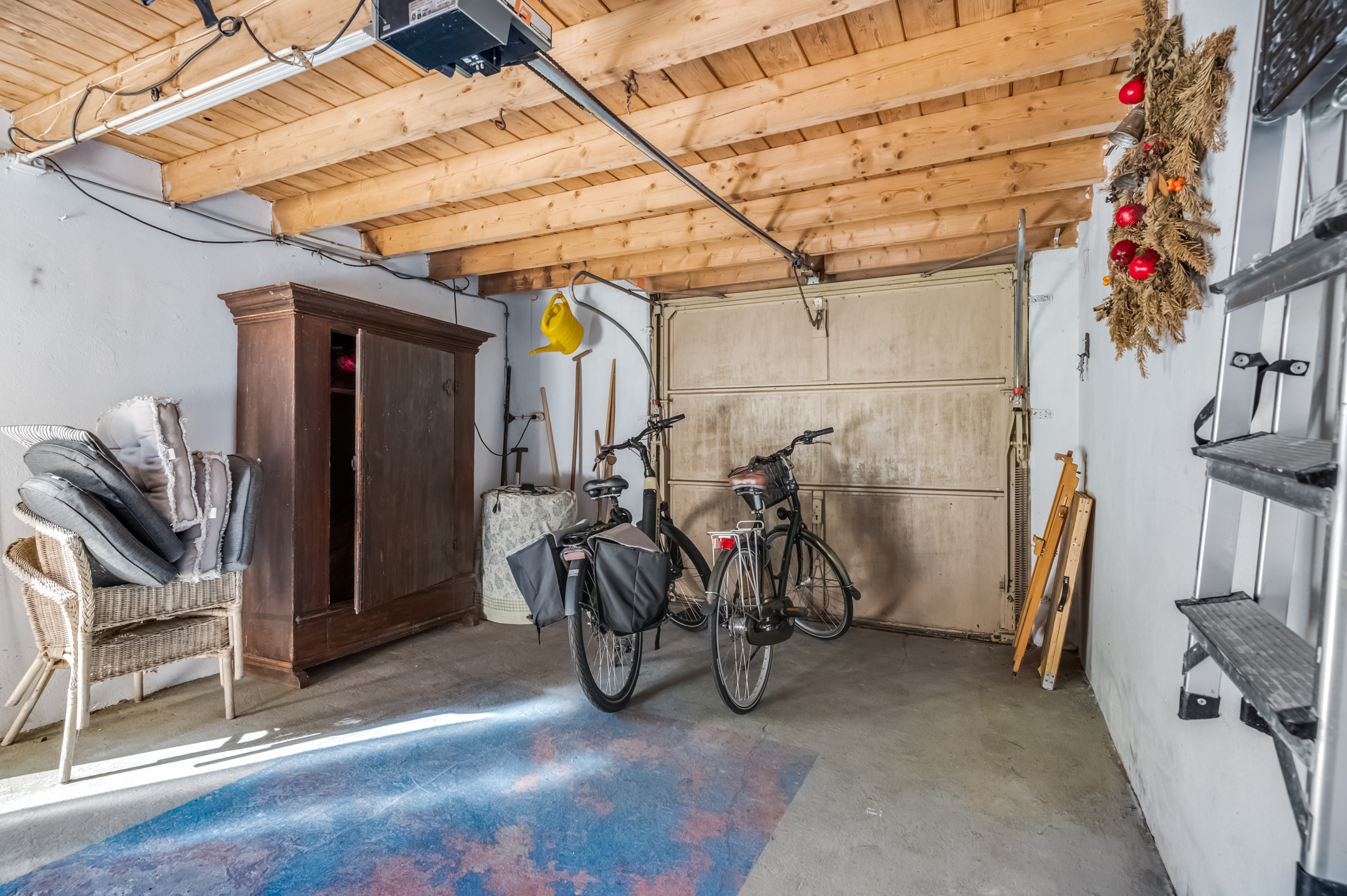 De oprit biedt ruimte om de auto op eigen perceel te plaatsen. Verder heeft de woning een praktische garage met een elektrisch bedienbare kanteldeur. De tuin is verzorgd en onderhoudsvriendelijk aangelegd en biedt een fijne buitenruimte.
