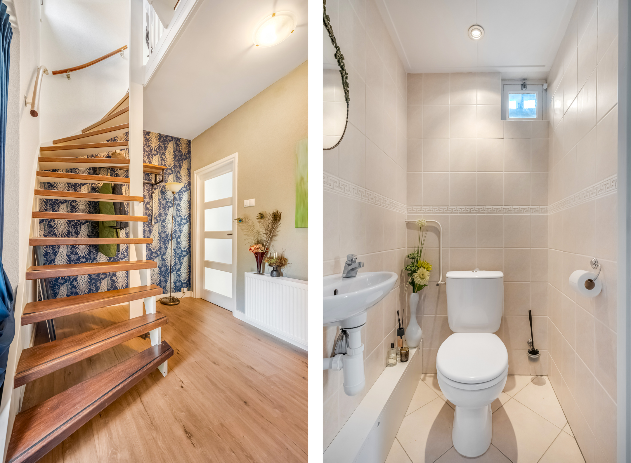 Begane grond: je komt binnen in de nette hal met meterkast, toilet en de trapopgang naar de verdieping. De lichte woonkamer is een heerlijke plek om te zijn! Dankzij de grote raampartijen geniet je van veel daglicht en er is een prachtig uitzicht in de groene straat. De woonkamer heeft een gezellige sfeer en is een fijne ruimte waar je je direct thuis voelt. Via het eetgedeelte is er toegang tot de open keuken aan de achterzijde van de woning. Deze is enkele jaren volledig vernieuwd en beschikt over inbouwapparatuur zoals een inductiekookplaat, oven, vaatwasmachine en een close-in boiler voor direct warm water! Door het zijraam is er ook in de keuken veel daglicht! Verder is er toegang tot de achtertuin.