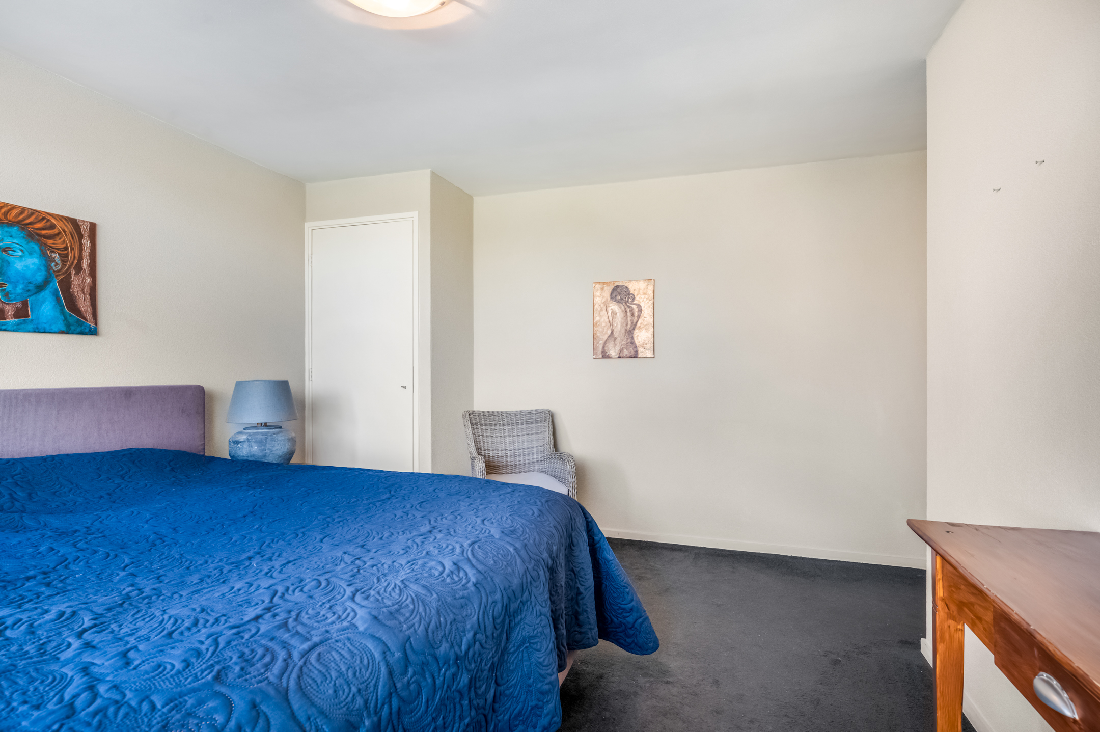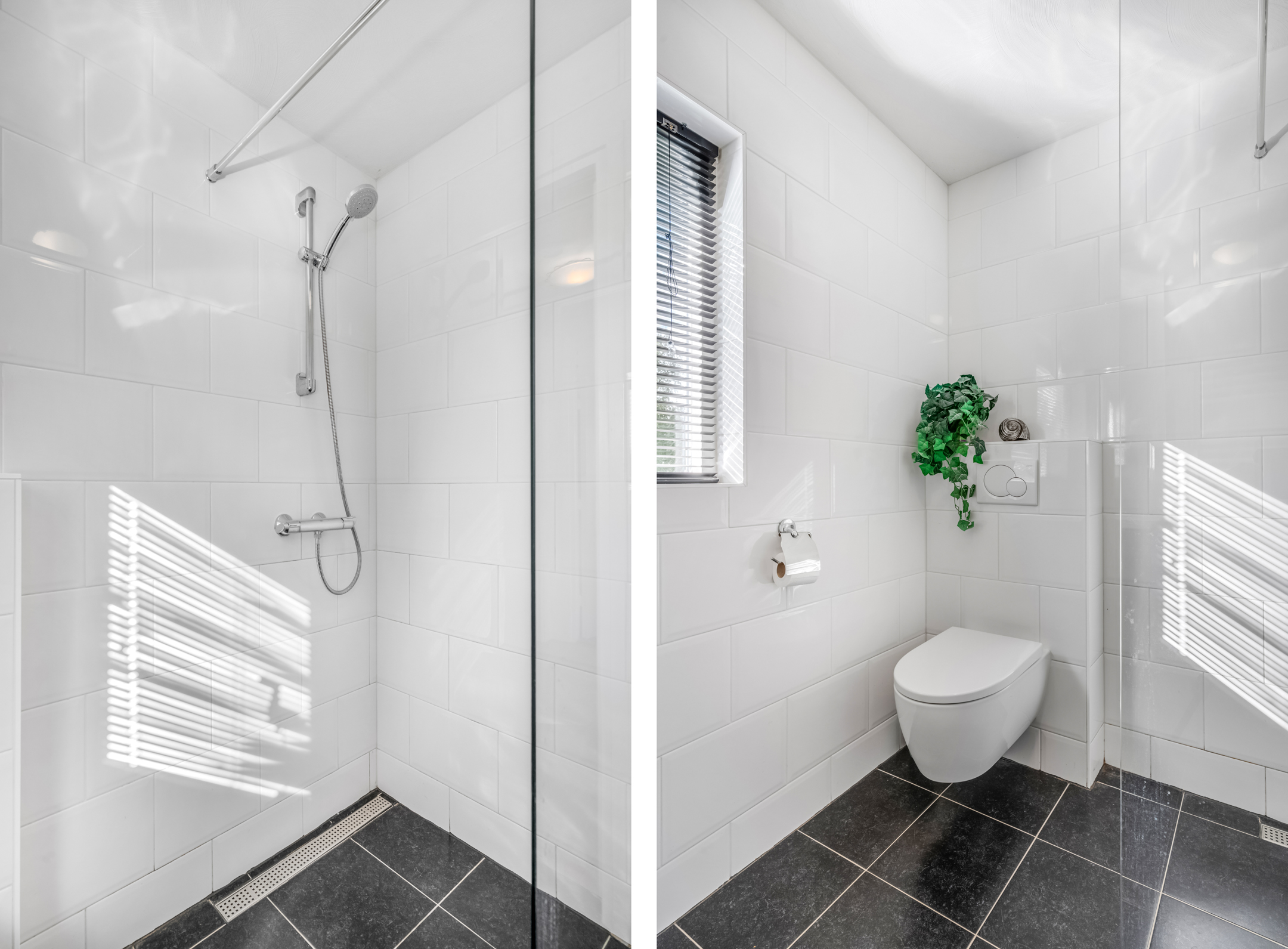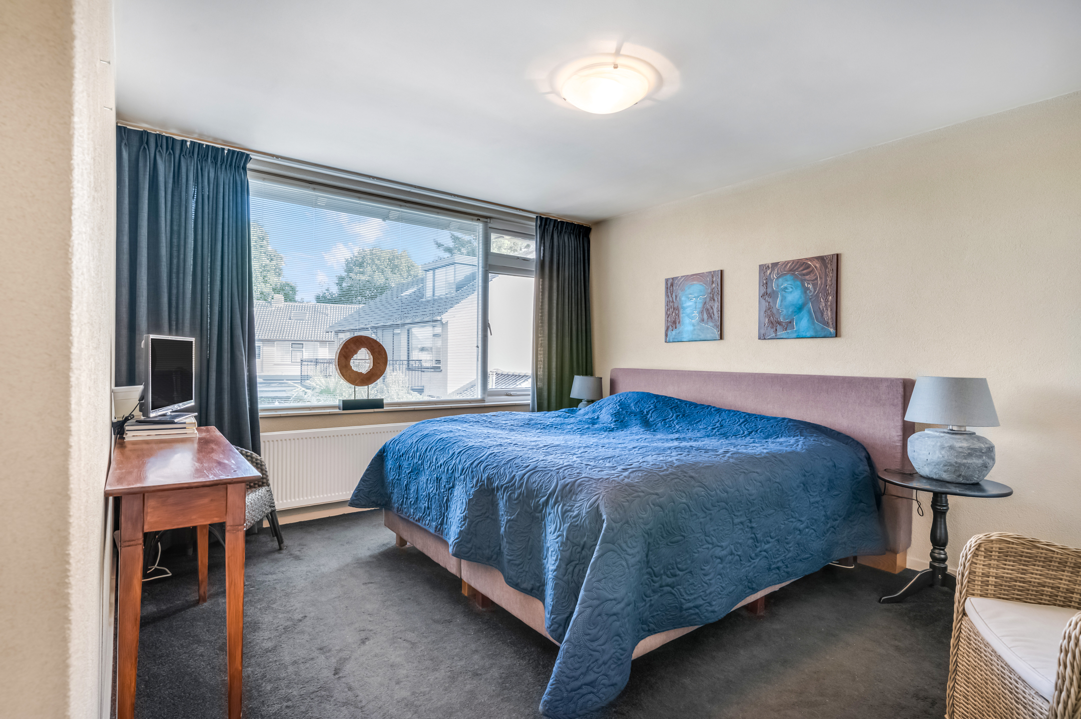 1e verdieping: overloop met toegang tot drie slaapkamers met vaste kasten, waarvan de royale ouderslaapkamer zich aan de achterzijde bevindt. De slaapkamer aan de voorzijde beschikt over een elektrisch bedienbaar rolluik. De badkamer is praktisch ingedeeld en heeft een douchehoek, toilet en een praktisch wastafelmeubel.