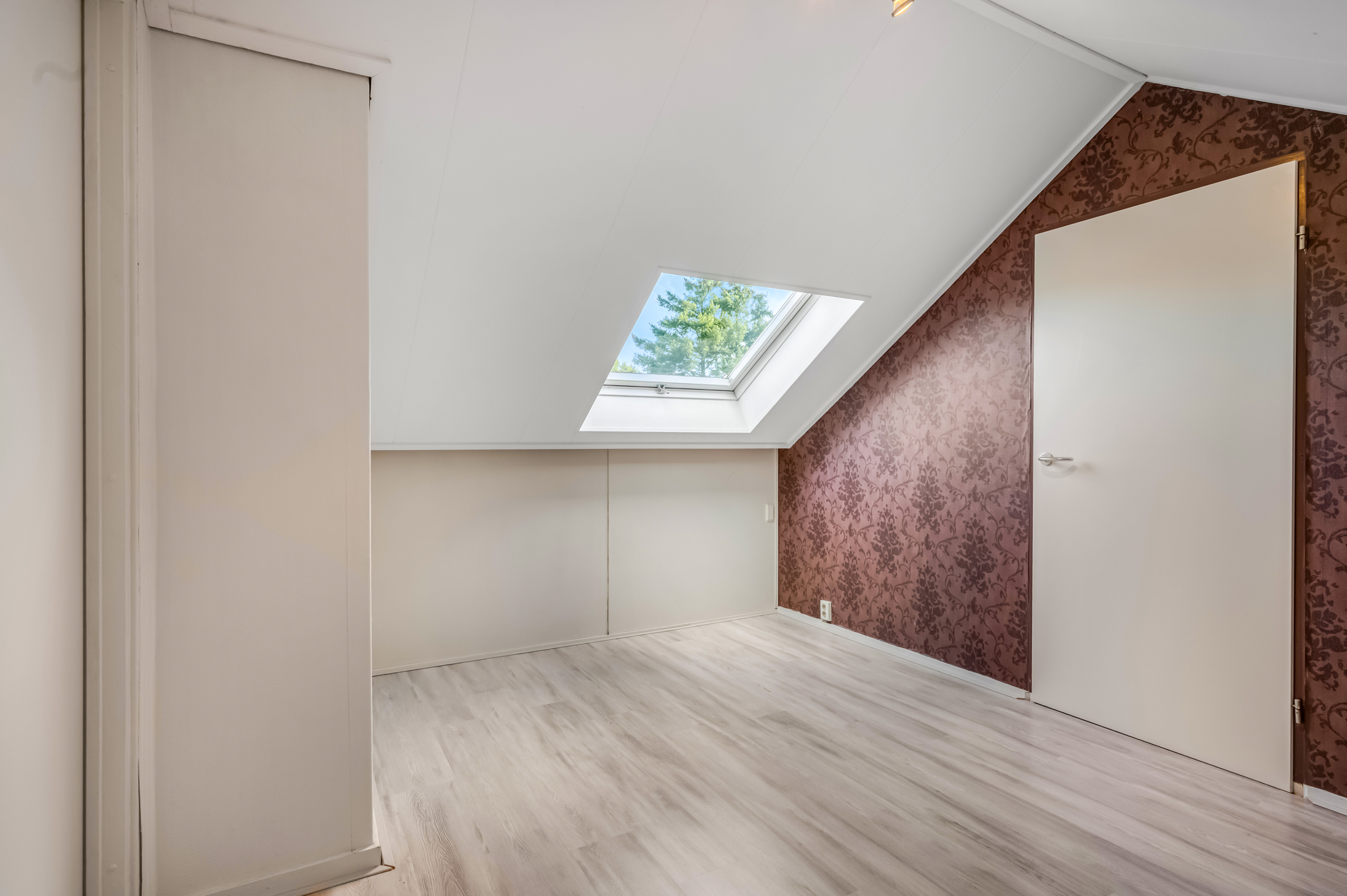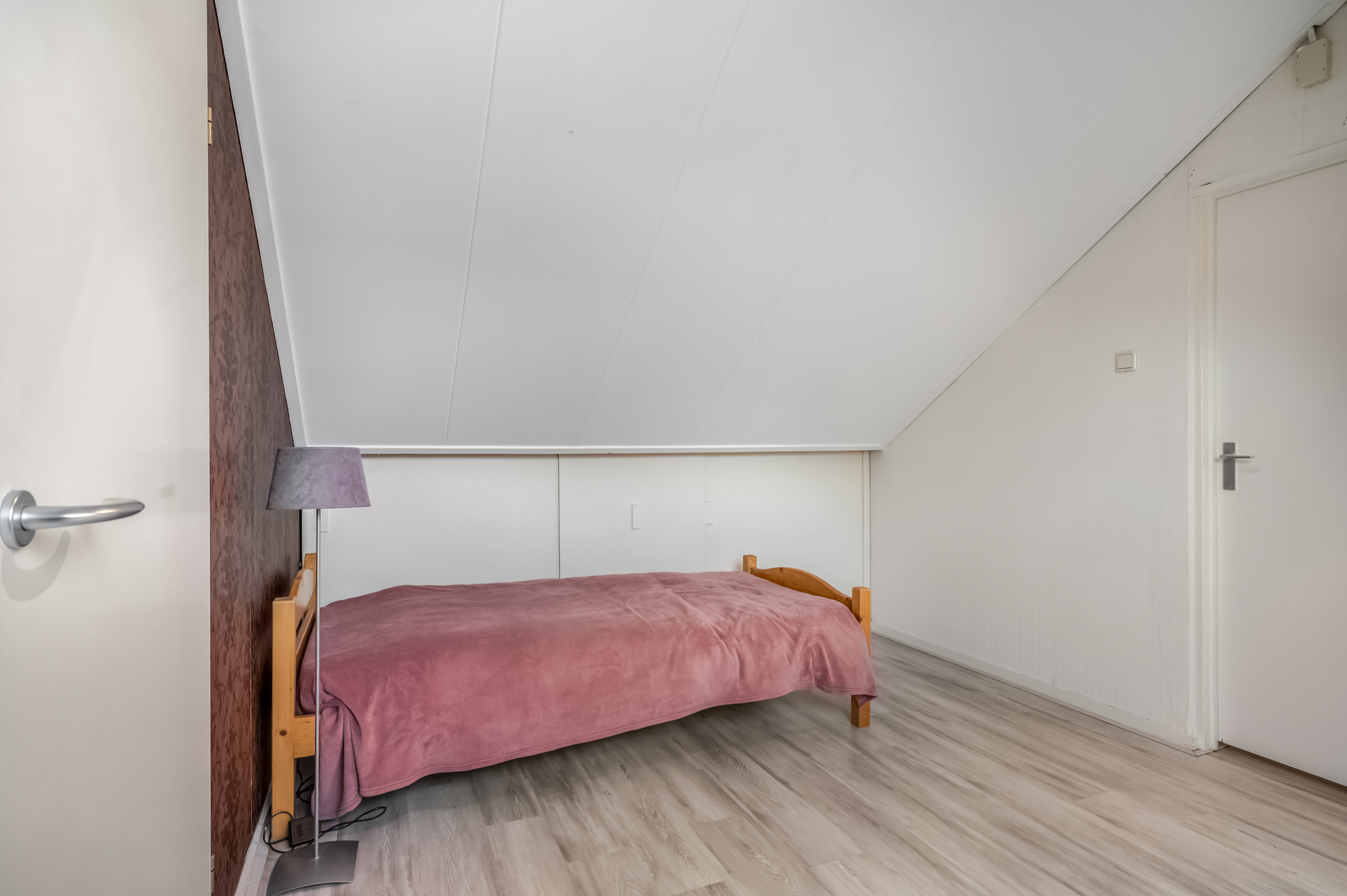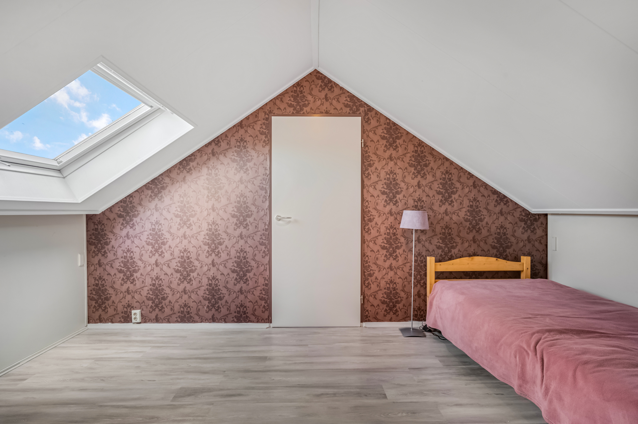 2e verdieping: overloop met witgoedaansluiting en toegang tot de vierde slaapkamer met dakvenster. Vanuit deze kamer is er toegang tot de kast met cv-opstelling. Tevens is er op deze verdieping veel bergruimte achter de knieschotten.