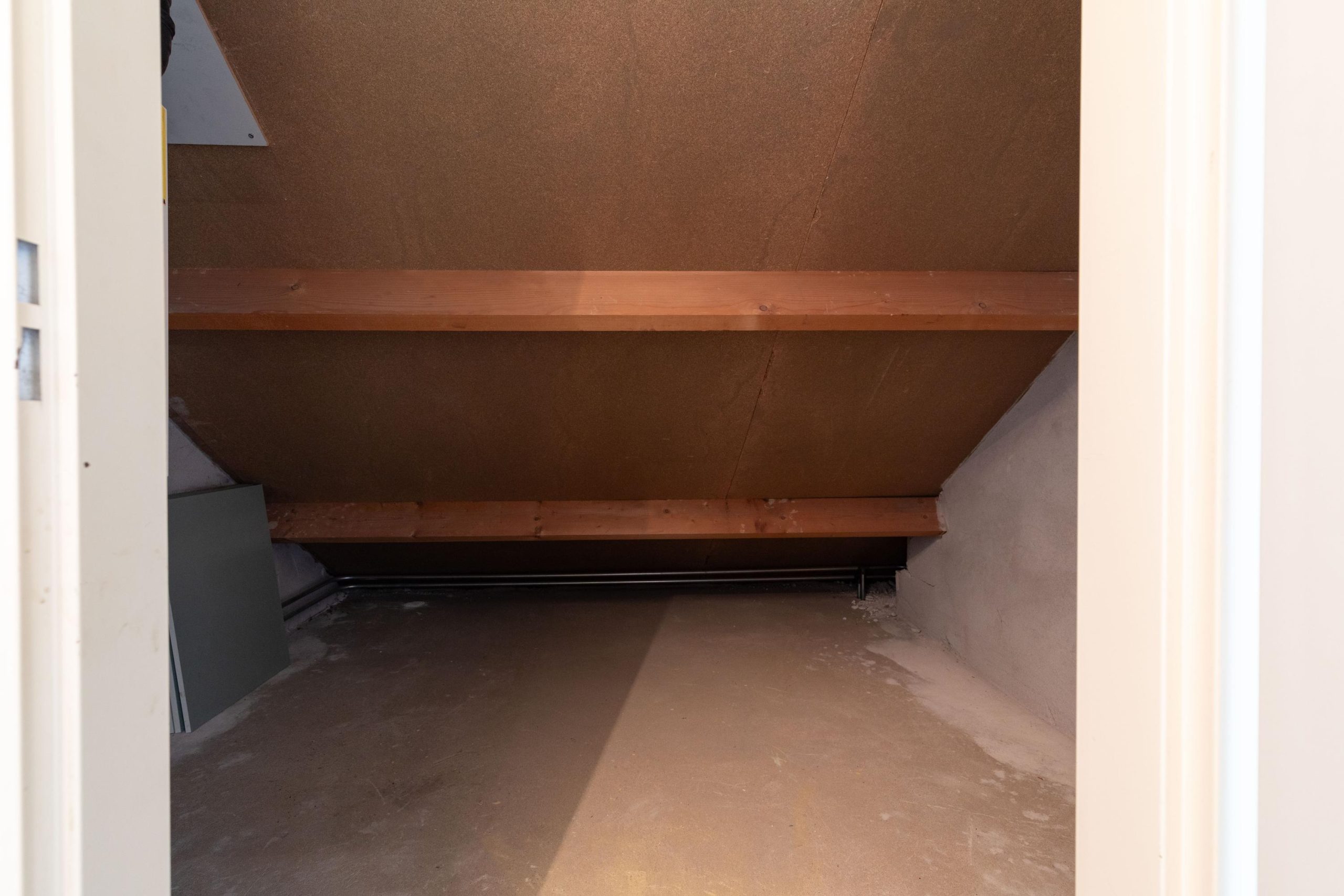 Deze verdieping is bereikbaar via een vaste trap. Hier bevindt zich een royale slaapkamer met een Velux-dakvenster, wat zorgt voor veel daglicht. Daarnaast is er een aparte berg- en stookruimte, waar de CV-ketel is opgesteld en extra bergruimte aanwezig is.