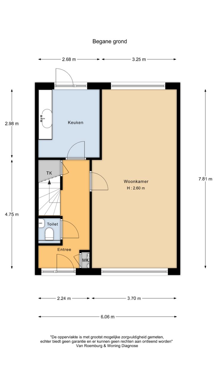 Via de entree kom je in de hal, waar zich het toilet, de meterkast en de trapopgang bevinden. Vanuit de hal stap je de lichte woonkamer binnen, die dankzij de breedte van de woning een ruime indruk geeft. Aansluitend bevindt zich de dichte keuken, voorzien van een inbouwkeuken, met uitzicht op de achtertuin.