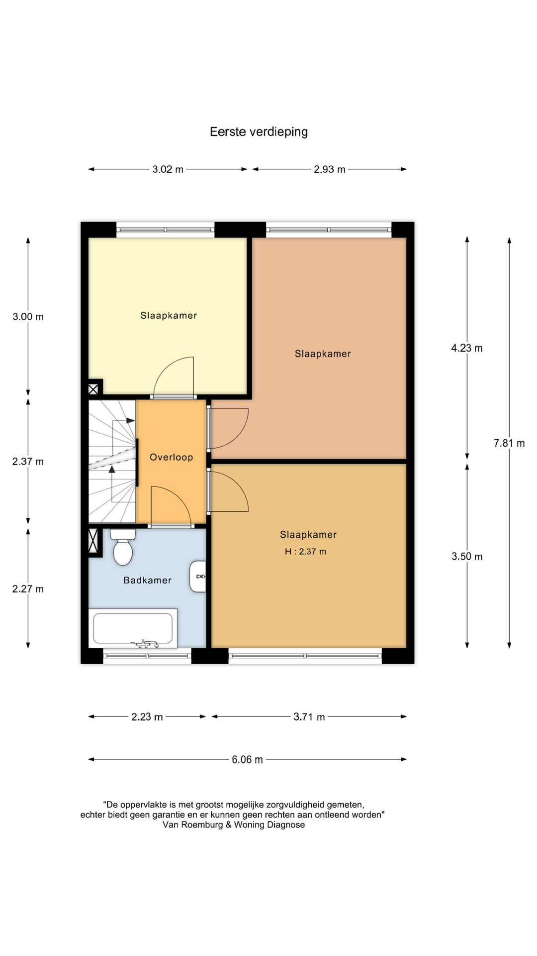 De overloop biedt toegang tot drie ruime slaapkamers, die ieder prettig van formaat zijn. De badkamer is praktisch ingedeeld en uitgerust met een ligbad, wastafel en toilet.