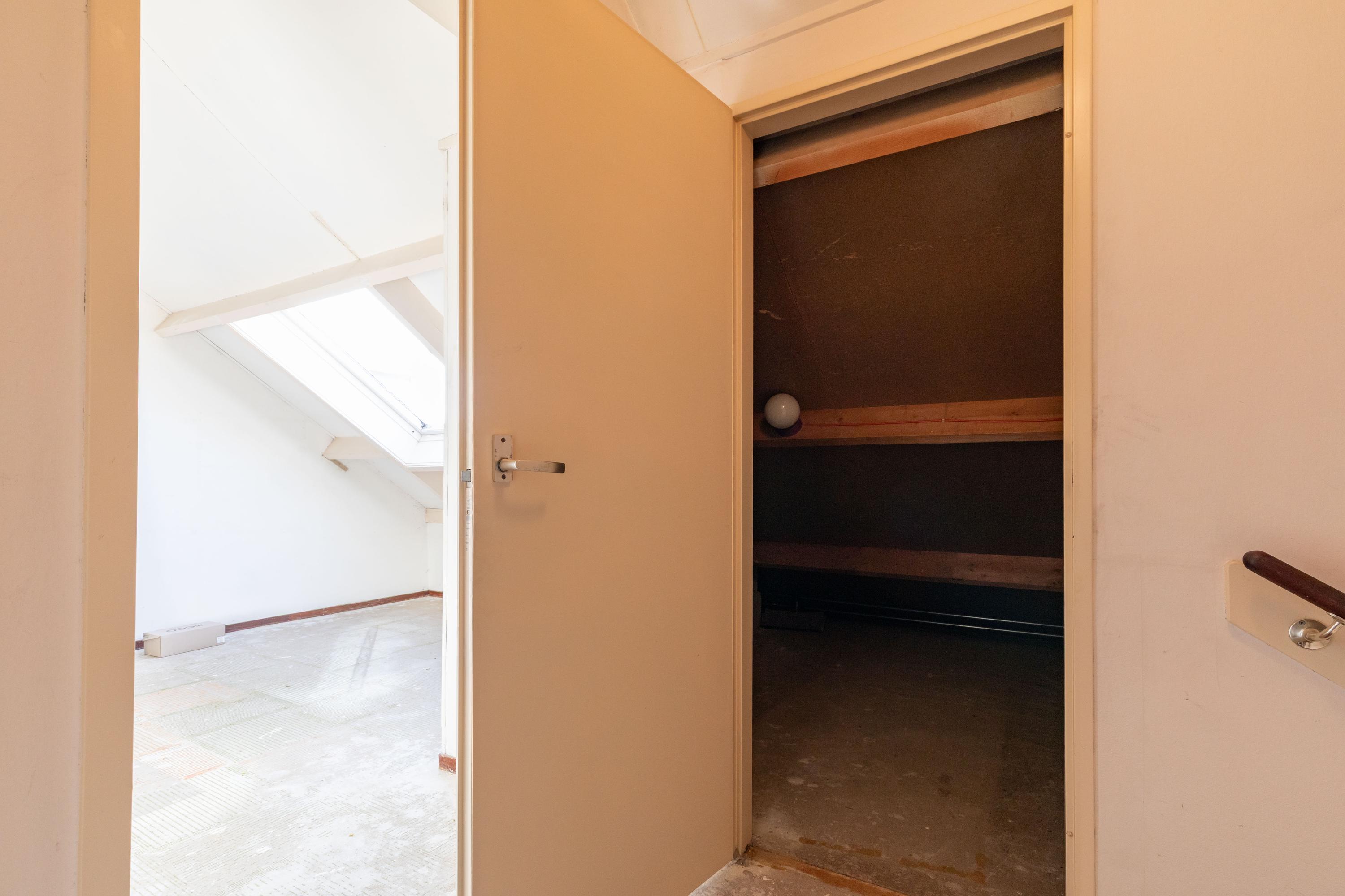 Deze verdieping is bereikbaar via een vaste trap. Hier bevindt zich een royale slaapkamer met een Velux-dakvenster, wat zorgt voor veel daglicht. Daarnaast is er een aparte berg- en stookruimte, waar de CV-ketel is opgesteld en extra bergruimte aanwezig is.