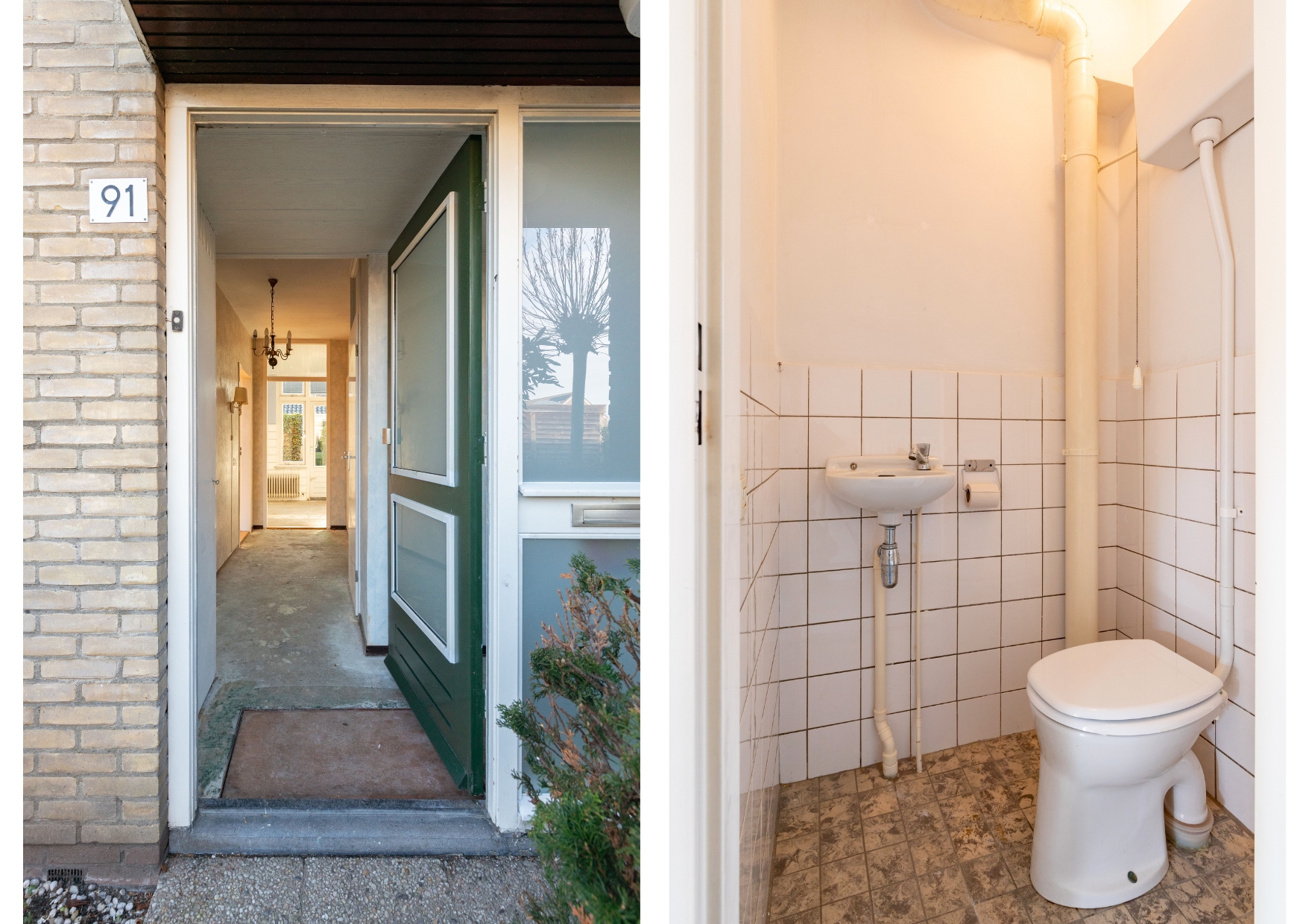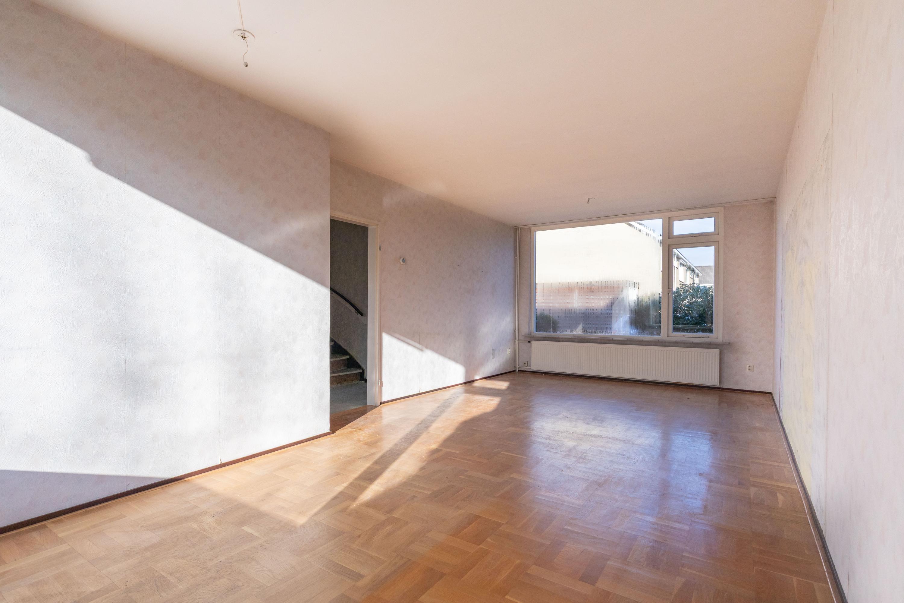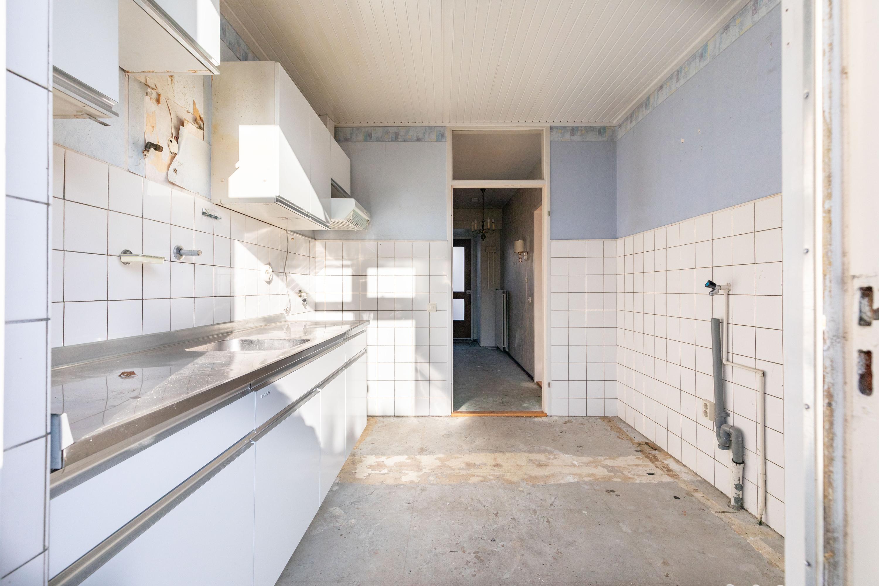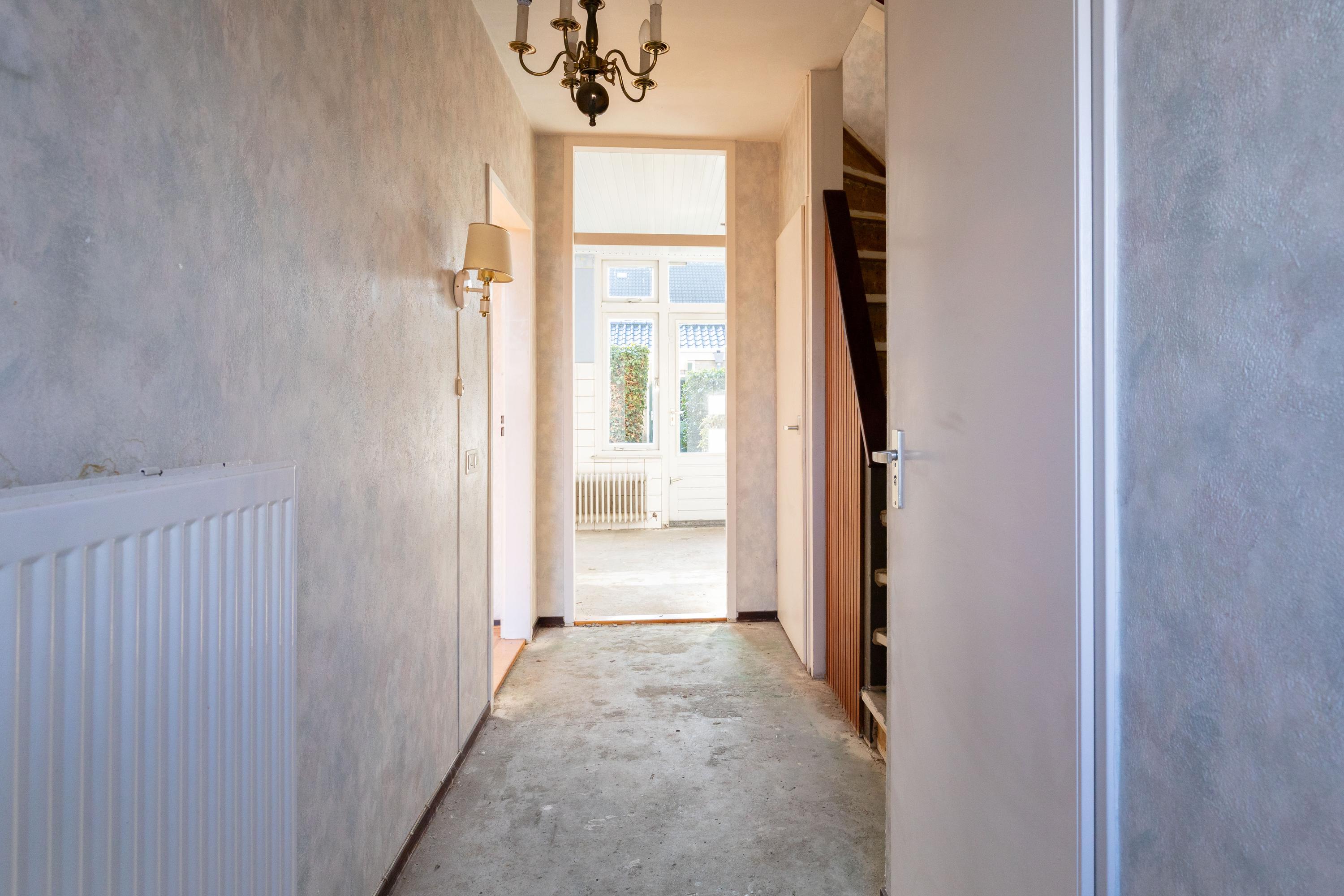 Via de entree kom je in de hal, waar zich het toilet, de meterkast en de trapopgang bevinden. Vanuit de hal stap je de lichte woonkamer binnen, die dankzij de breedte van de woning een ruime indruk geeft. Aansluitend bevindt zich de dichte keuken, voorzien van een eenvoudige keukenblok met deur naar achtertuin.