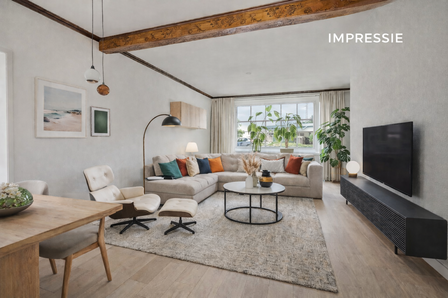 Bij aankomst valt direct de charmante uitstraling van de woning op. De oprit biedt voldoende ruimte om meerdere auto’s te parkeren op eigen terrein. Via de entree stap je binnen in een lichte hal met trapopgang, ruime garderobe en toilet. De woonkamer ademt warmte en gezelligheid door middel van de sierbalken aan het plafond en de klassieke schouw. Grote raampartijen zorgen voor veel lichtinval en een fijn zicht op de voortuin en de straat. De aangrenzende keuken is praktisch ingericht en biedt directe toegang tot de bijkeuken. Vanuit de bijkeuken loop je door naar de ruime stenen garage. Uniek detail: de garage is voorzien van een vaste trap naar een volwaardige zolderverdieping, ideaal als hobbyruimte, extra opslag of zelfs als werkplek.