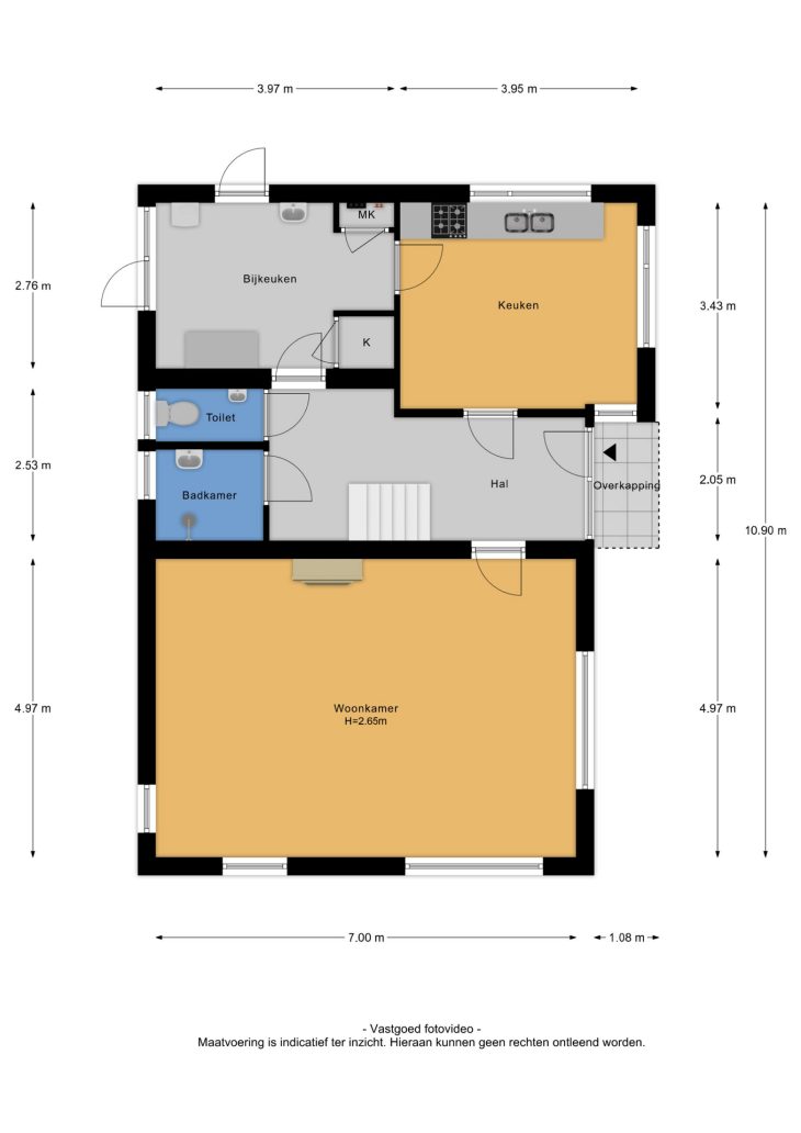 Begane grond: de entree met vide en trapopgang geeft toegang tot de lichte woonkamer gesitueerd aan de voorzijde van de woning met weids uitzicht. De keuken met aangrenzende bijkeuken en achter entree is gesitueerd aan de achterzijde van de woning. Tevens is vanuit de hal het toilet en de badkamer met douche bereikbaar.