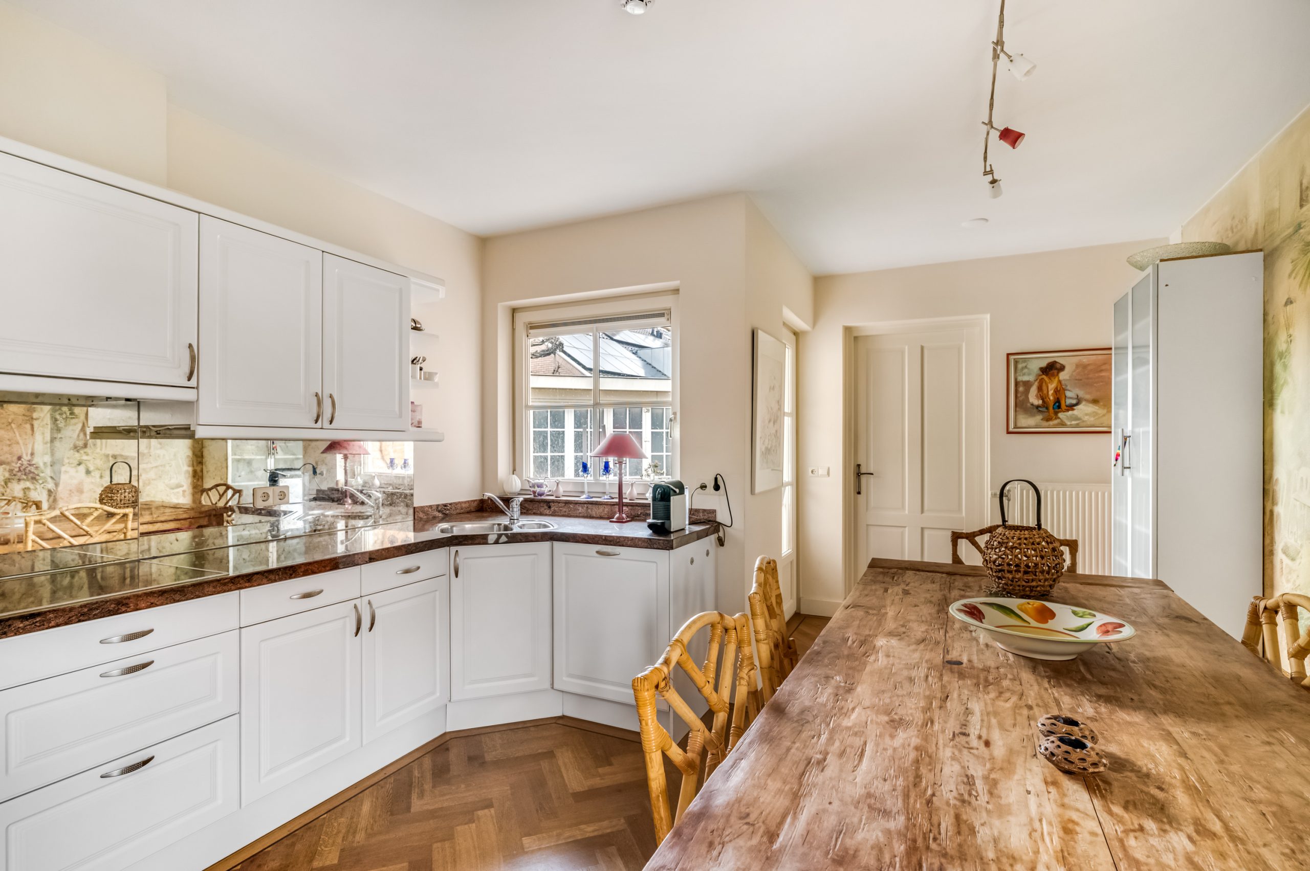 De royale woonkeuken is voorzien van een inbouwkeuken met diverse inbouwapparatuur. Hier is volop ruimte voor een grote eettafel, dé plek waar lange avonden vanzelf ontstaan.