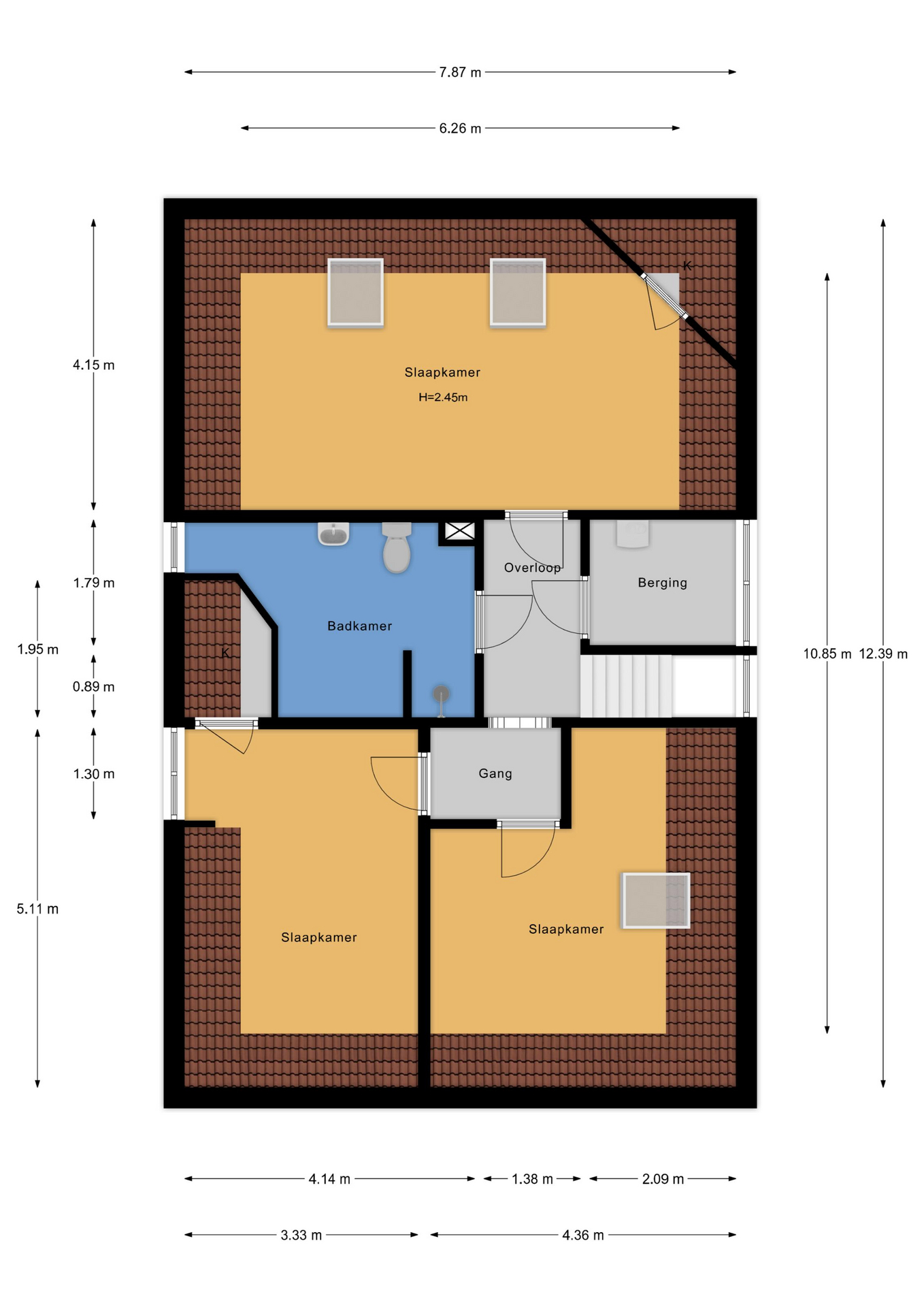• Twee slaapkamers aan de voorzijde met praktische bergruimte