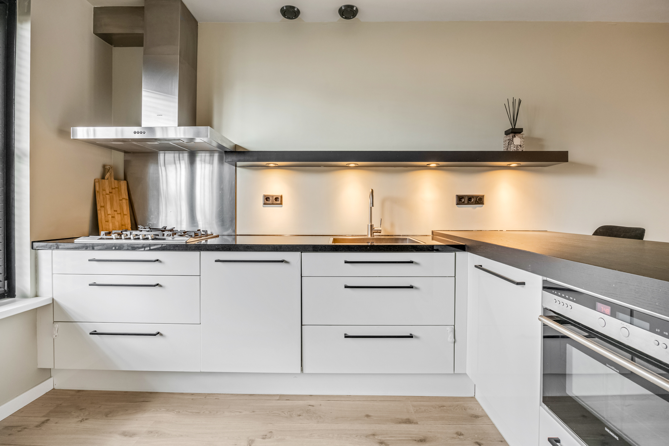De moderne keuken aan de voorzijde van de woning is van alle gemakken voorzien. Met een 5-pits gasfornuis, vaatwasser en een koel-vriescombinatie biedt deze keuken alles wat je nodig hebt voor het bereiden van de lekkerste maaltijden. Met veel werkruimte en is dit een fijne plek voor iedere kookliefhebber.