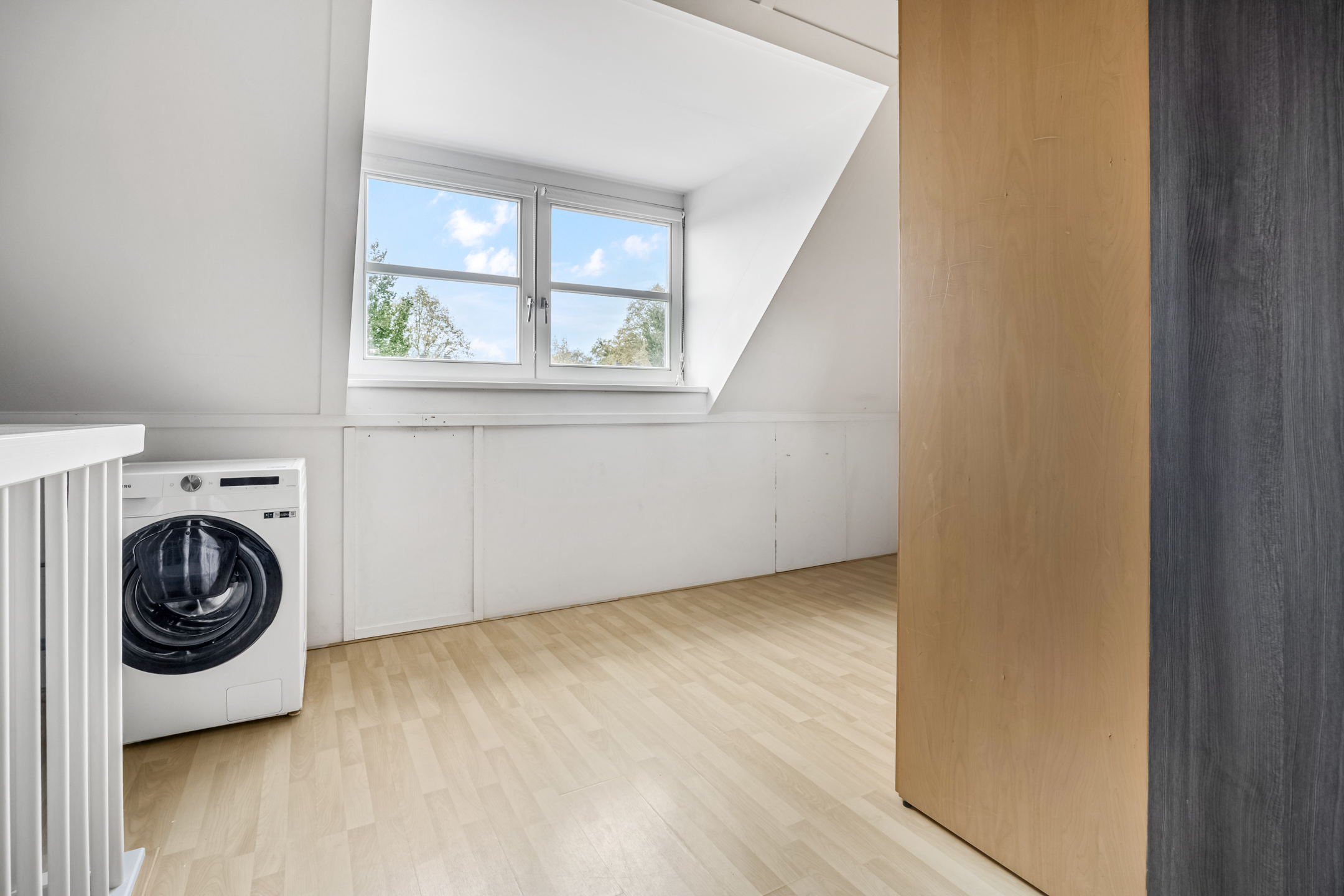 De tweede verdieping biedt verrassend veel ruimte, dankzij de grote dakkapel. Hier kun je gemakkelijk twee (slaap)kamers realiseren, ideaal voor een logeerkamer, een werkplek of een hobbyruimte. Daarnaast vind je hier ook de aansluiting voor de wasmachine en droger.