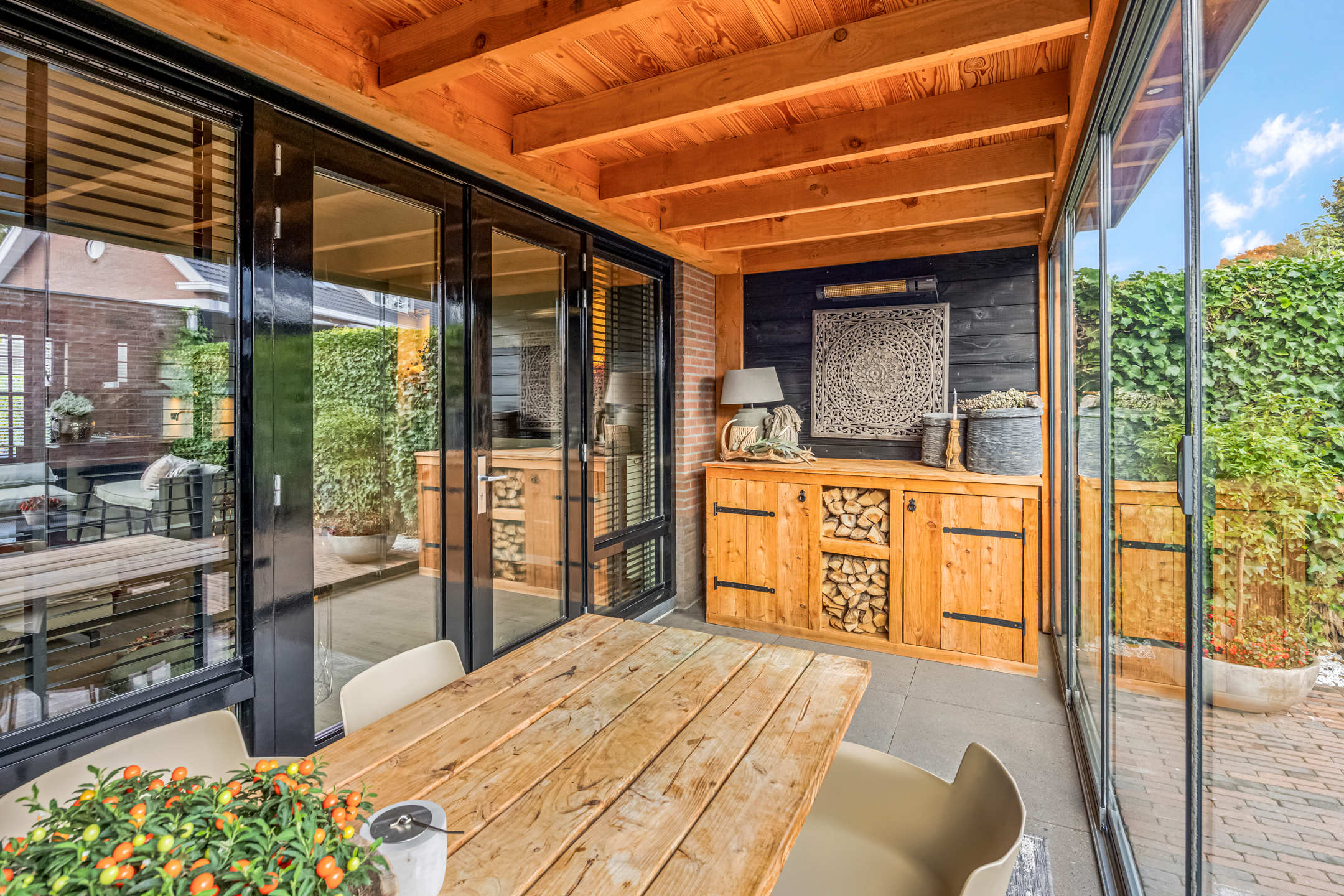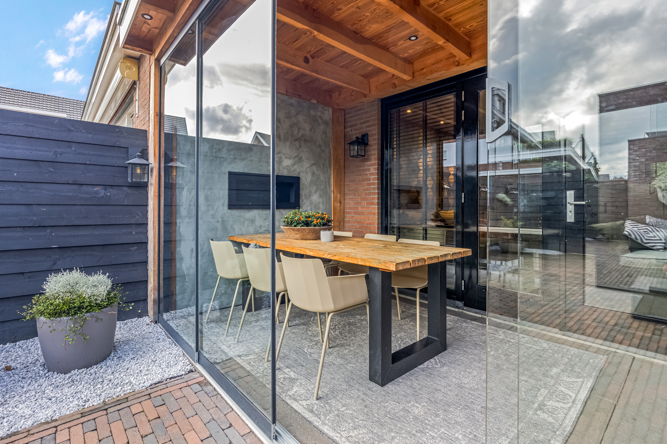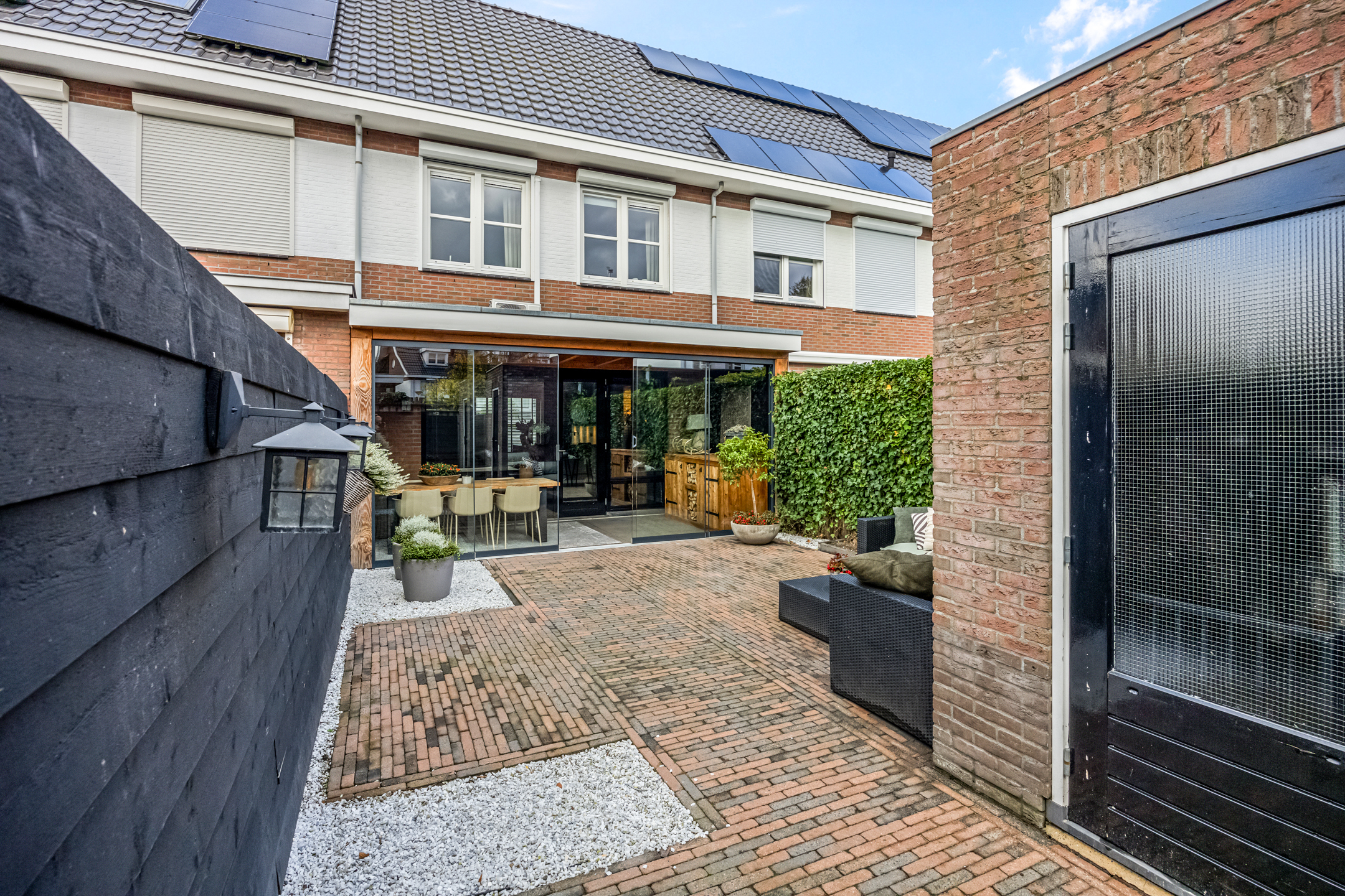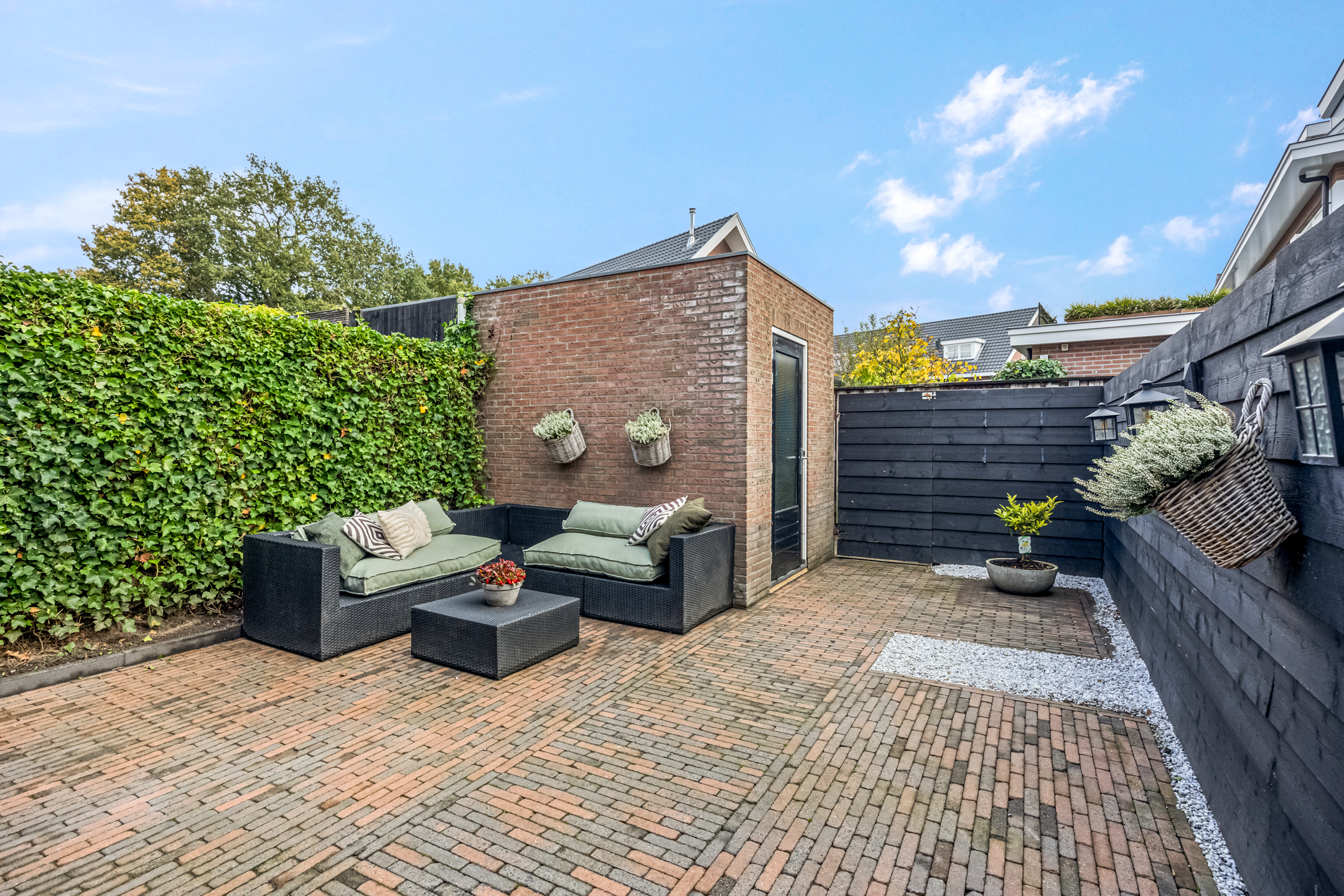 De onderhoudsvriendelijke achtertuin ligt op het zuiden en biedt volop privacy, waardoor je hier al vroeg in het voorjaar kunt genieten van de zon. De tuin is aangelegd met fraaie bestrating, een gezellige zithoek en een praktische berging achterin. De serre is eigenlijk een verlengstuk van de woonkamer voor de lange zomeravonden.