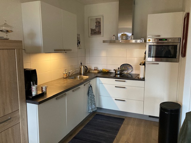 Indeling appartement: entree, hal met meterkast, bergruimte met CV- en MV opstelling en wasmachine aansluiting, hangend toilet met fonteintje, 2 slaapkamers, badkamer voorzien van wastafel en douchehoek, ruime woonkamer met deur naar terras/balkon en een luxe complete open keuken met afzuigkap, inductiekookplaat, koelkast, combi-oven en vaatwasmachine.