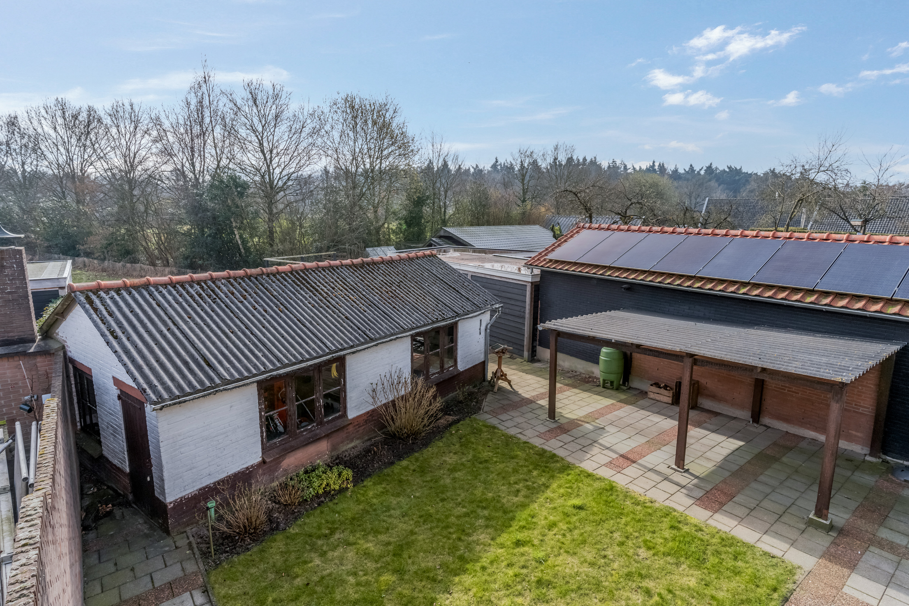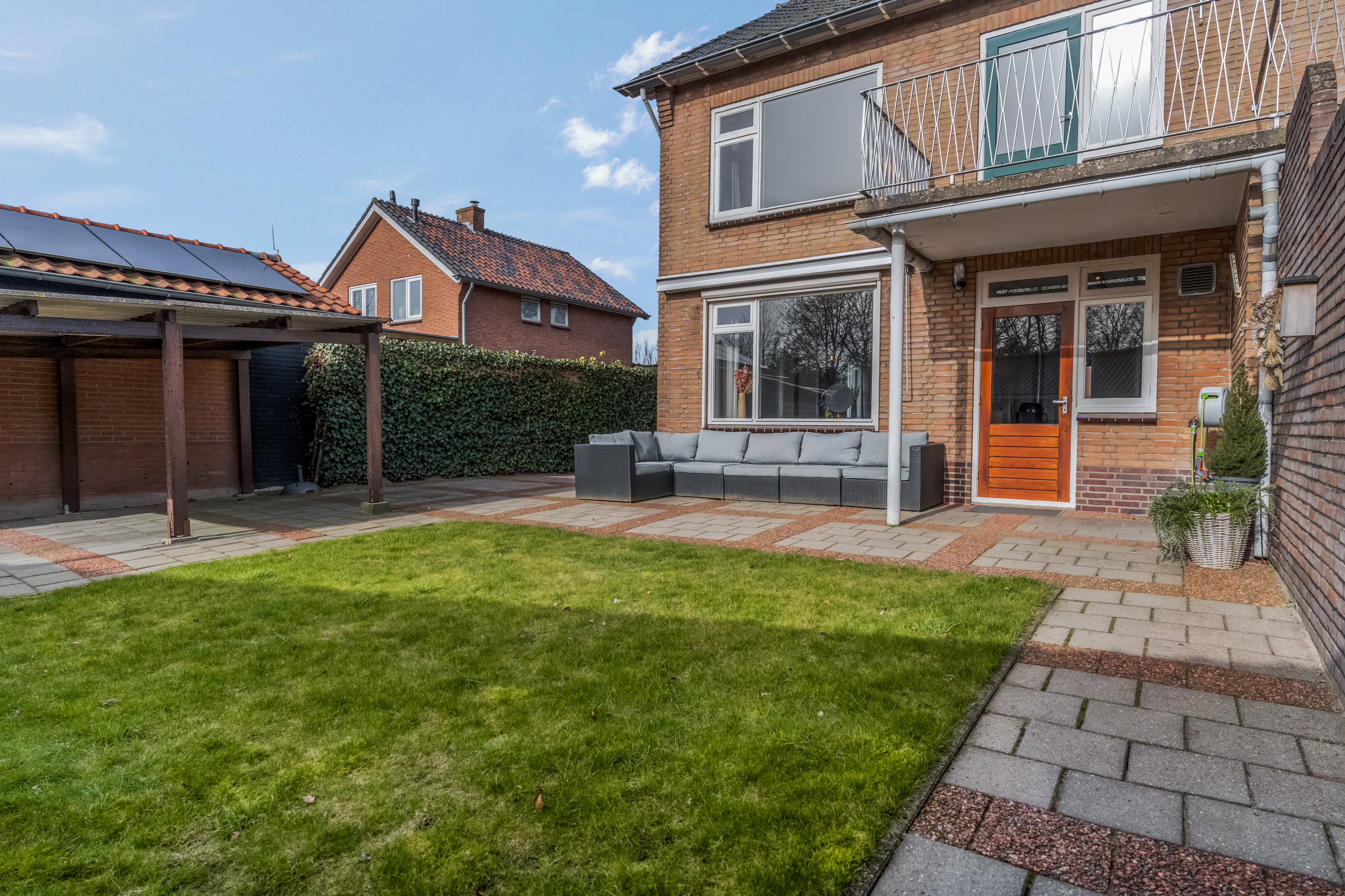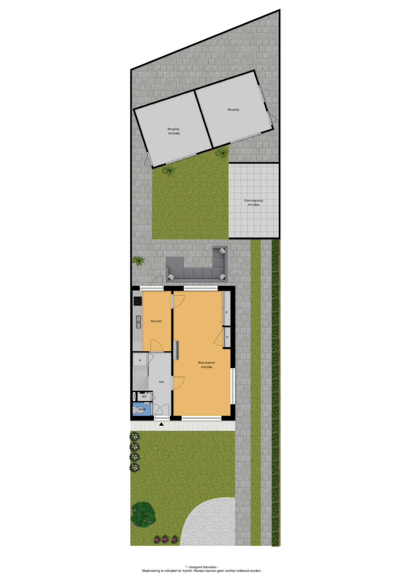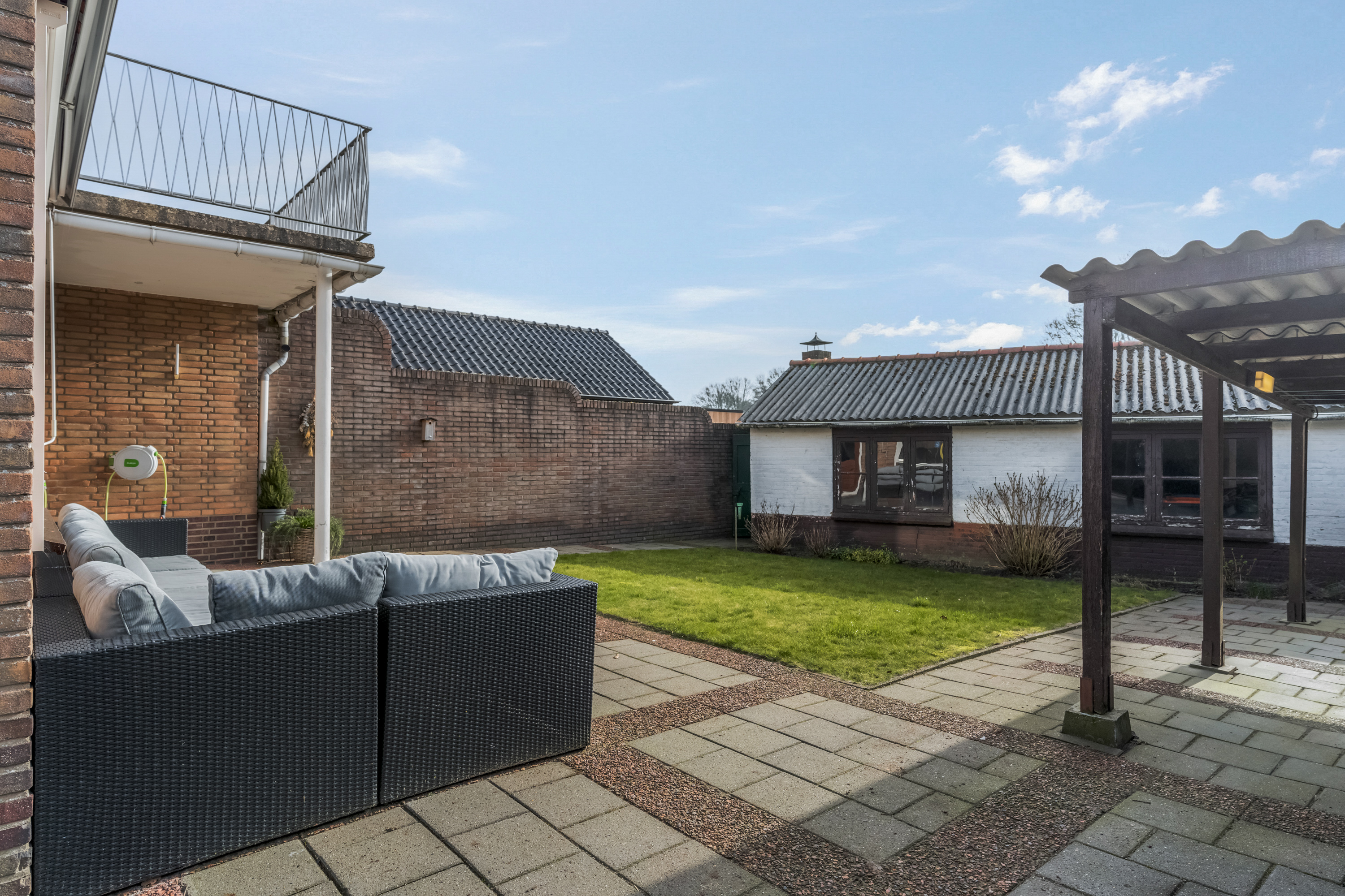 Het perceel is niet in één oogopslag volledig te overzien, doordat er een dubbele berging in de achtertuin staat. Daarachter bevindt zich nog een moestuin. Ook voor mensen met groene vingers zijn er dus volop mogelijkheden.