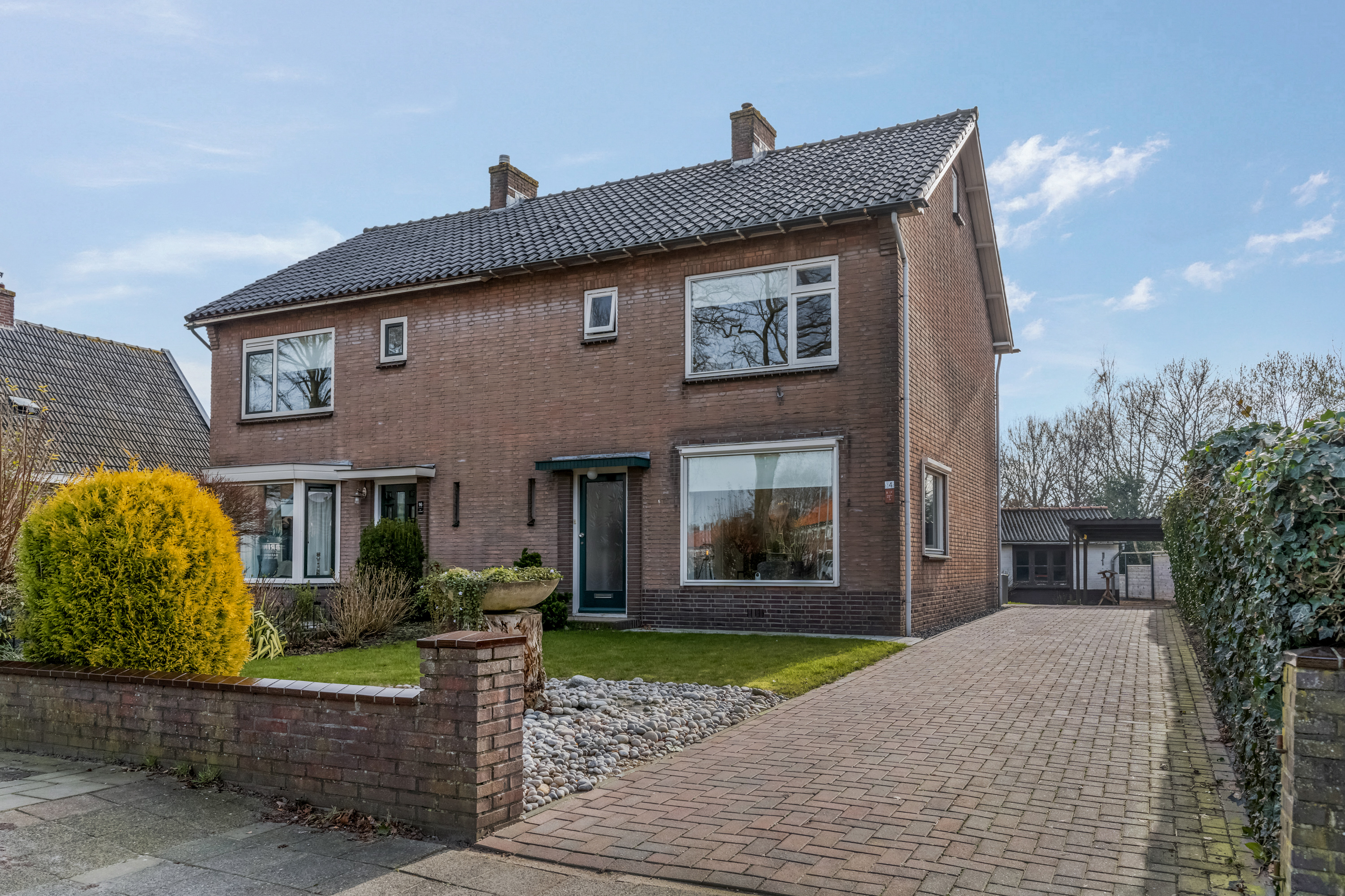 Deze goed gebouwde TWEE-ONDER-ÉÉN-KAPWONING ligt op een leuke locatie aan de rand van het dorp. Vanuit de achtertuin heb je vrij uitzicht over de weilanden en ook aan de voorzijde is er vrij uitzicht over de straat. Het gezellige centrum van het dorp ligt op loopafstand, net als het Johannabos en het Wilbrinkbos (ook wel het Heuveltjesbos genoemd). Kortom: op deze plek geniet je van het beste van twee werelden.