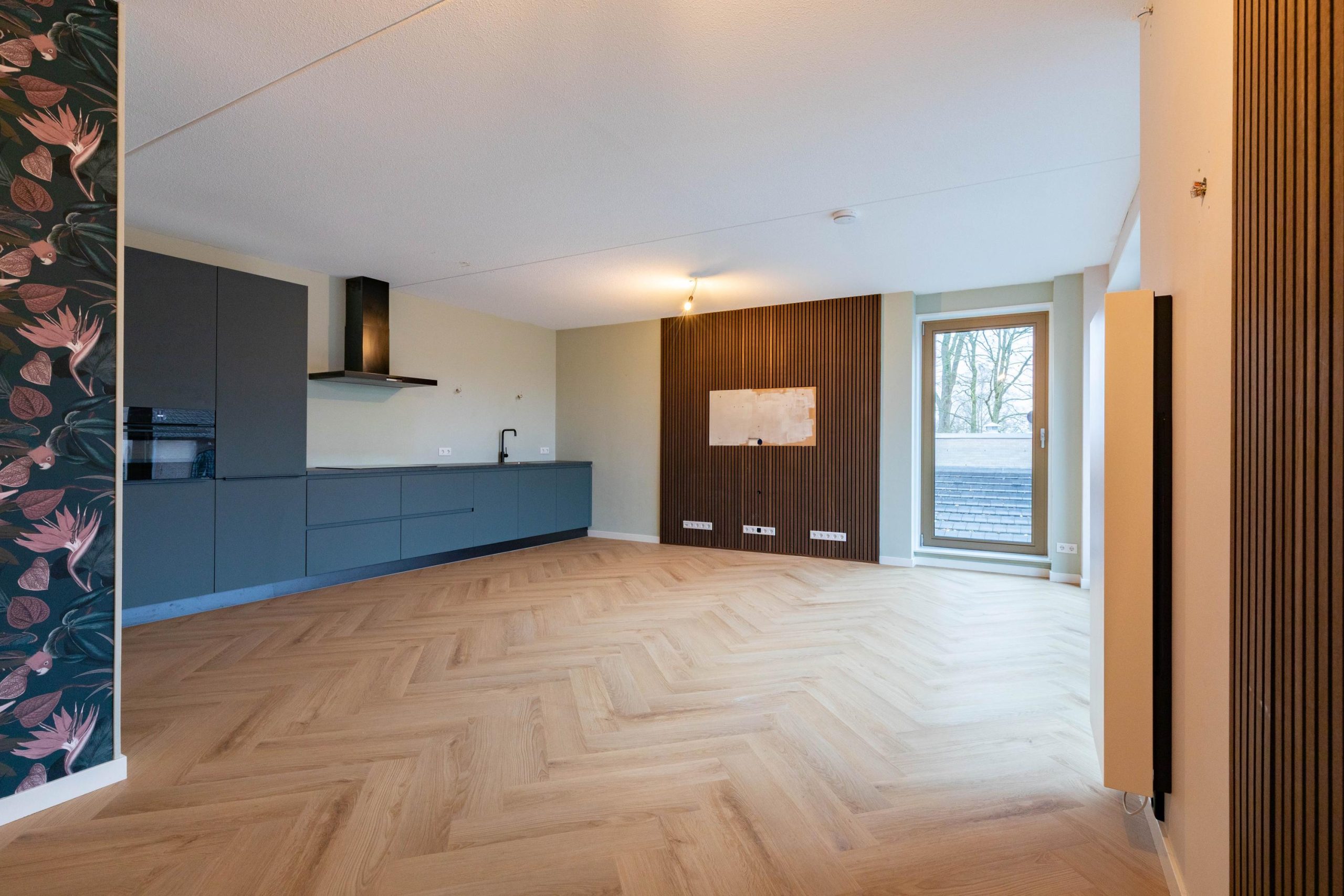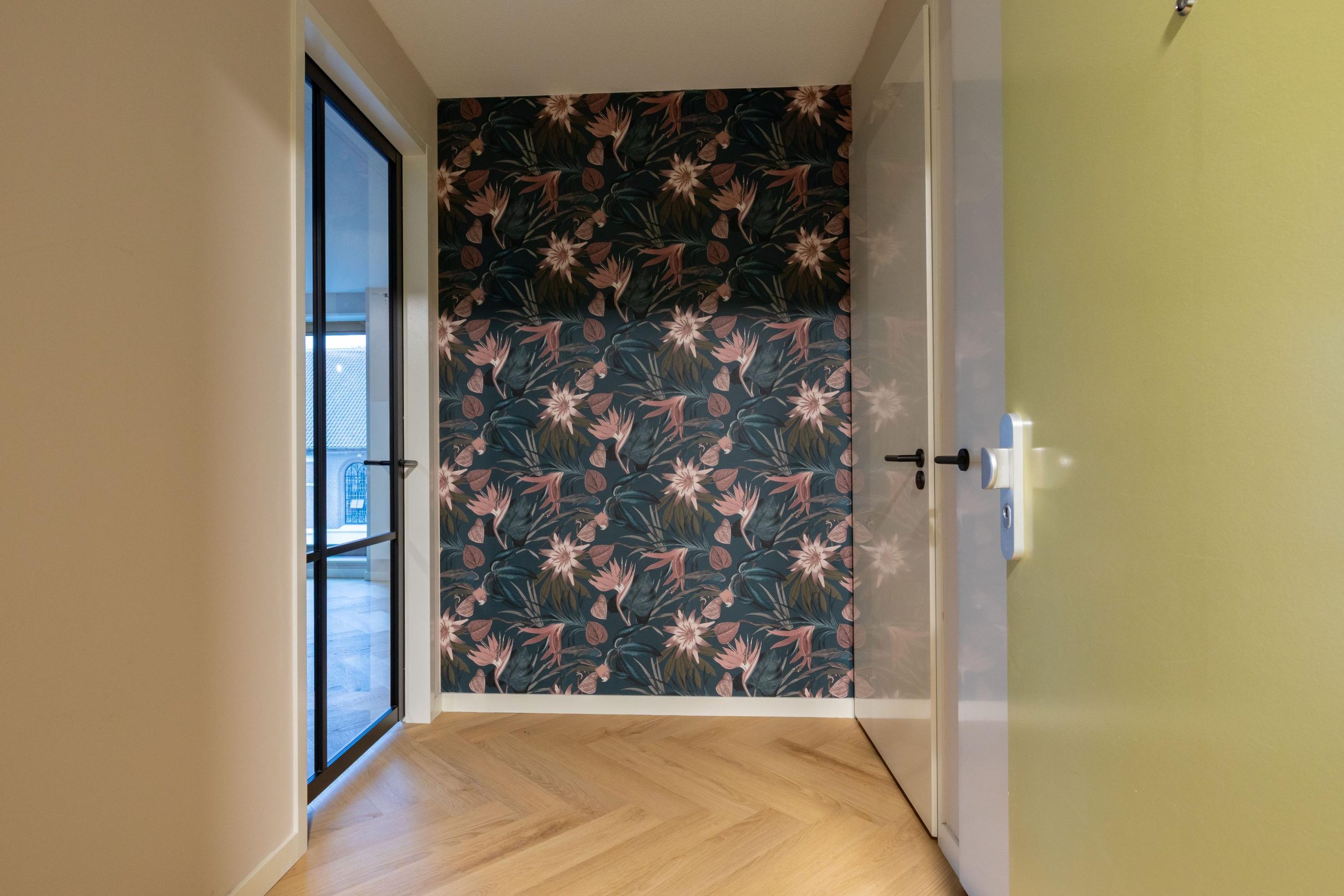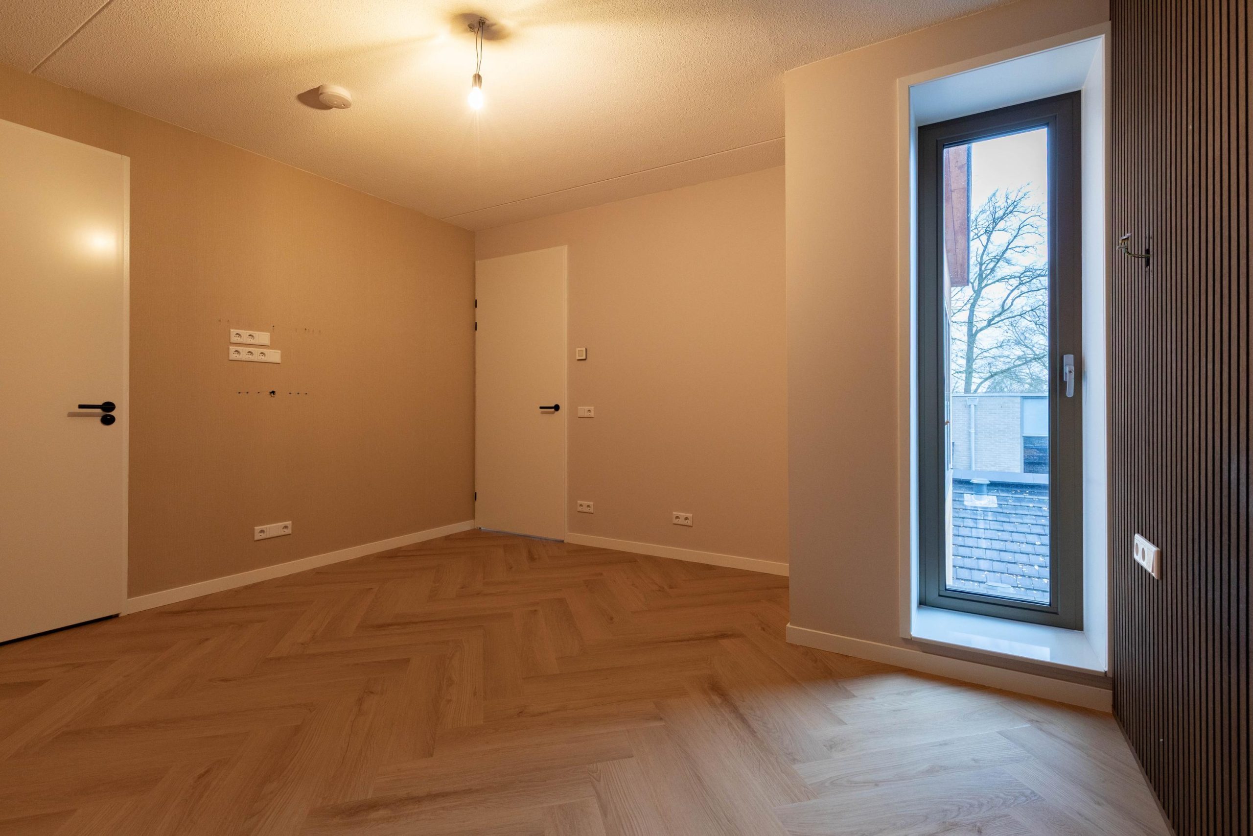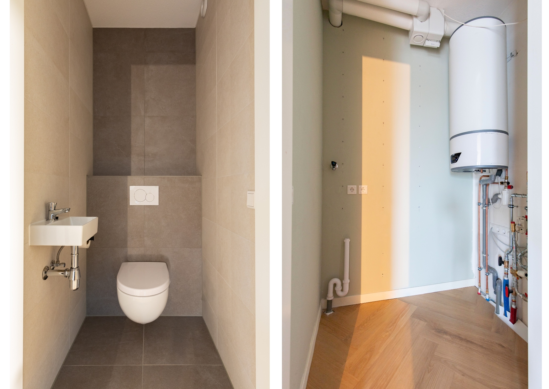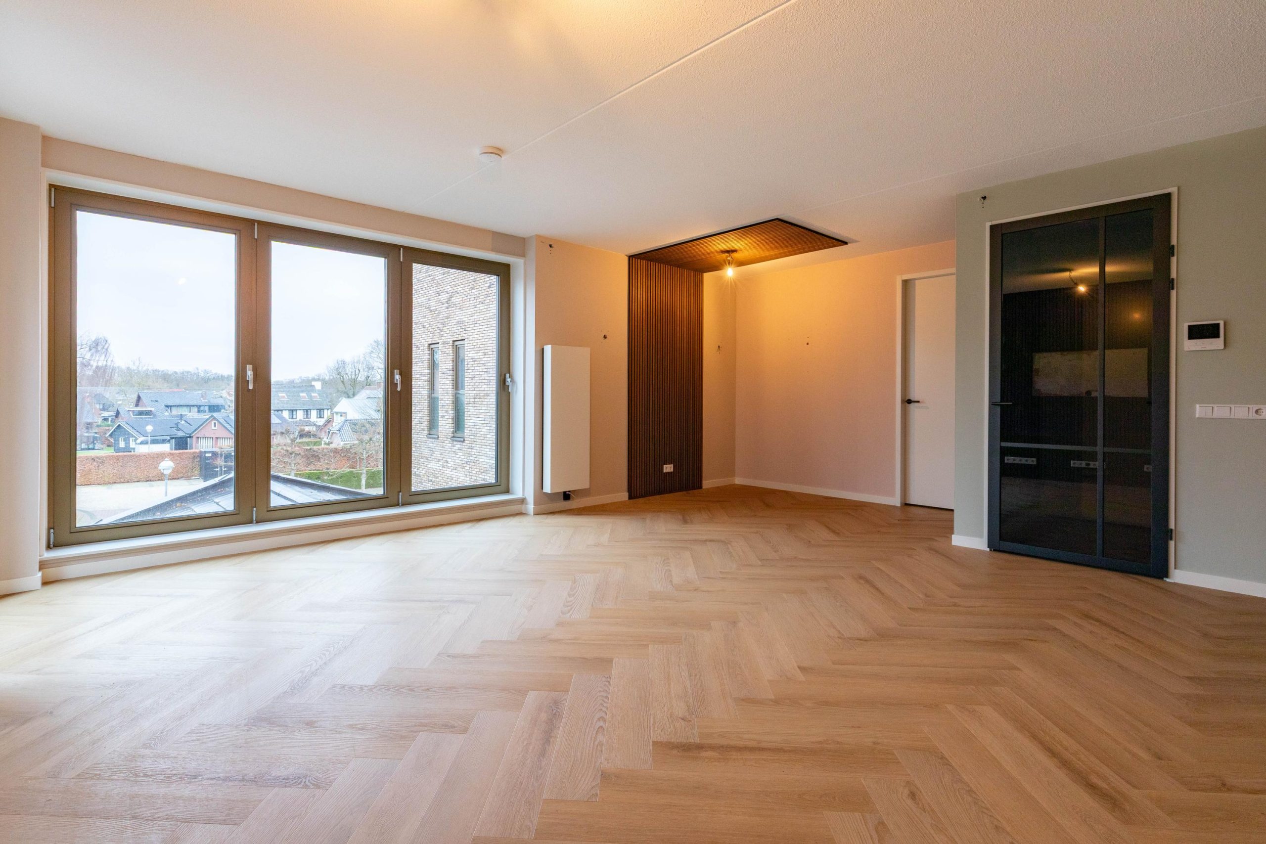 Het appartement op de 2e verdieping heeft een eigentijdse afwerking, is volledig voorzien van vloerverwarming met een PVC vloer, gladde wanden met gedeeltelijk houten wandbekleding en biedt een heerlijk wooncomfort en een leuk uitzicht door het hoekraam.