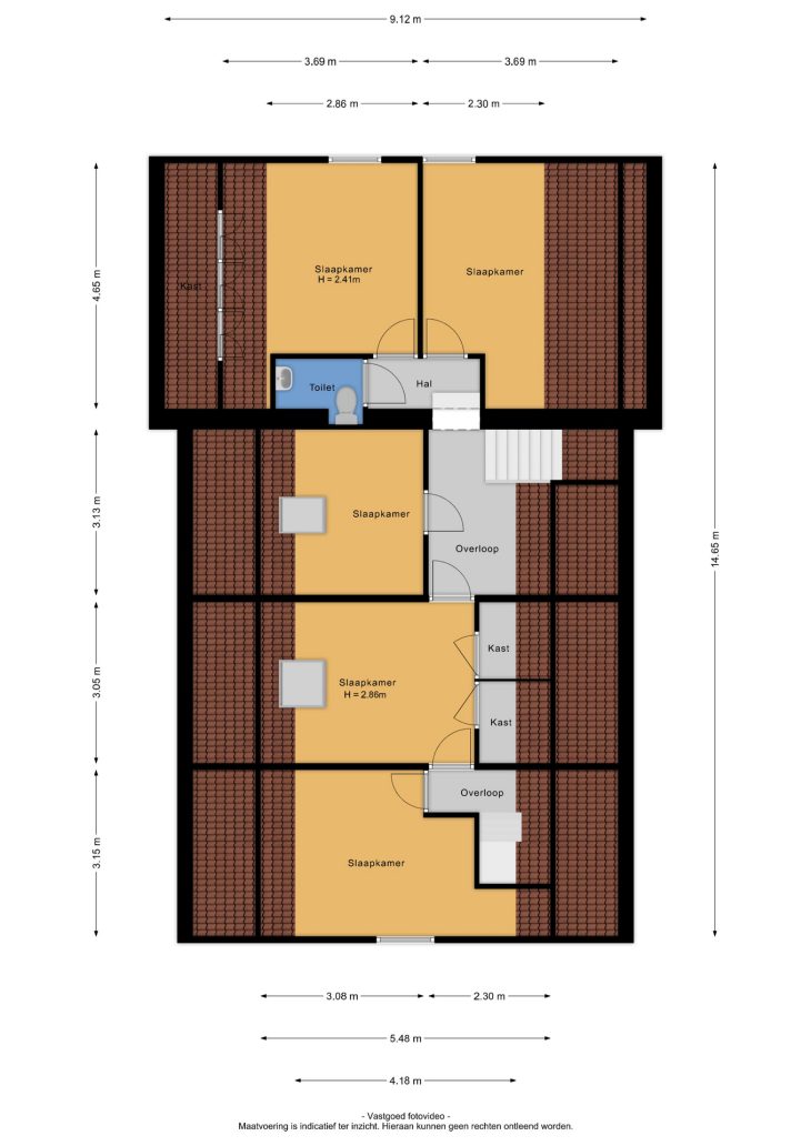 1e verdieping: via de trapopgang in het voorhuis komt u op de overloop met toegang tot een drietal slaapkamers en een toilet. De twee slaapkamers aan de voorzijde van de woning bieden prachtig uitzicht over de omgeving.